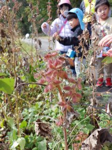いつの間にか・・・「ひっつきむしがいっぱいだ」「ぼくも!どっちがいっぱいかな?」