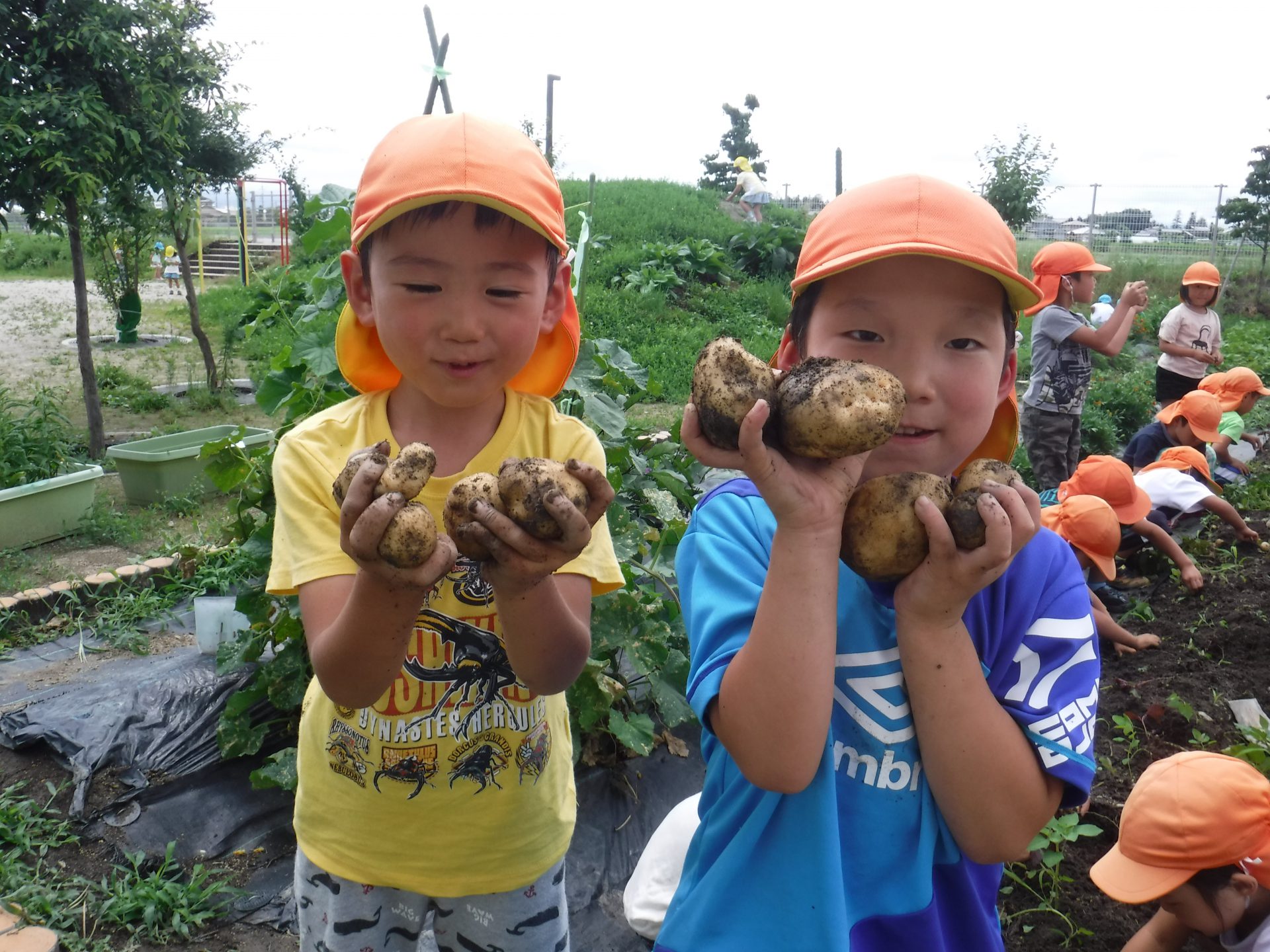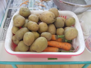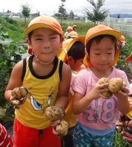 年長児は採れたジャガイモの数を一生懸命数え、「148個あったよ!」ととても小さなジャガイモも大切にする姿がありました。