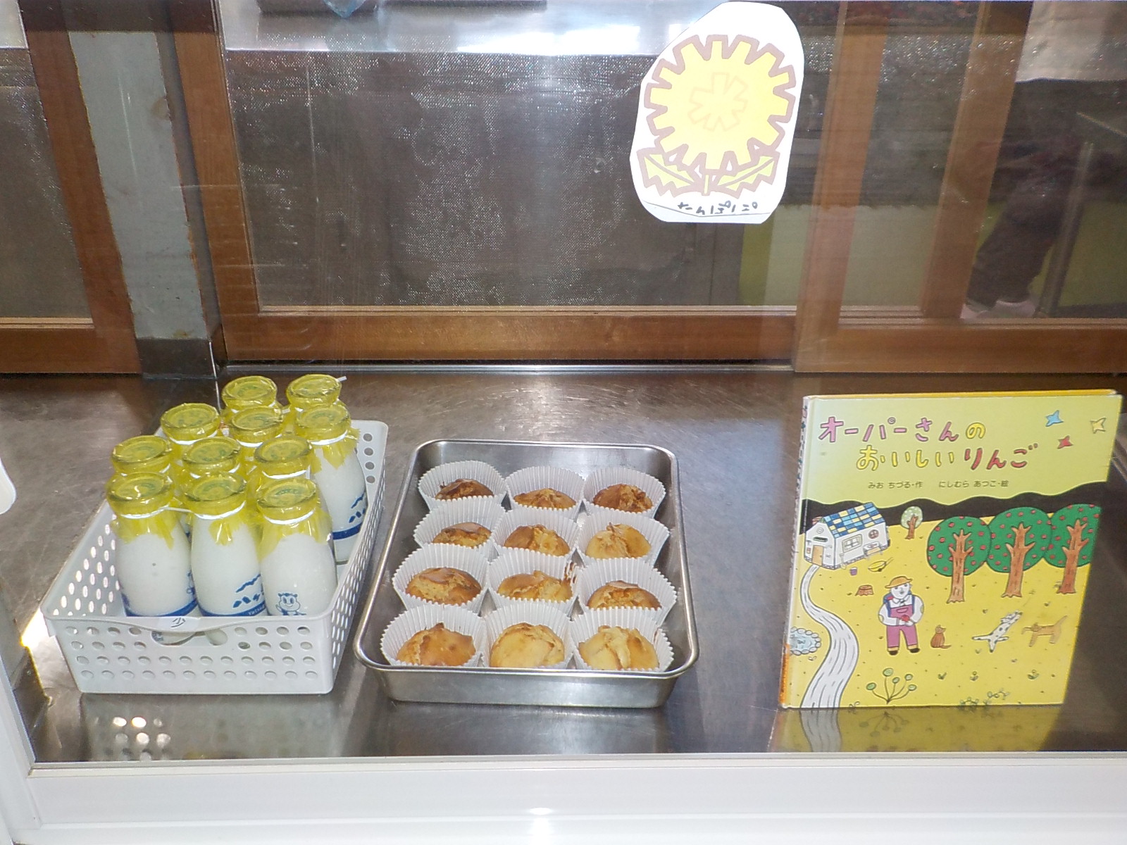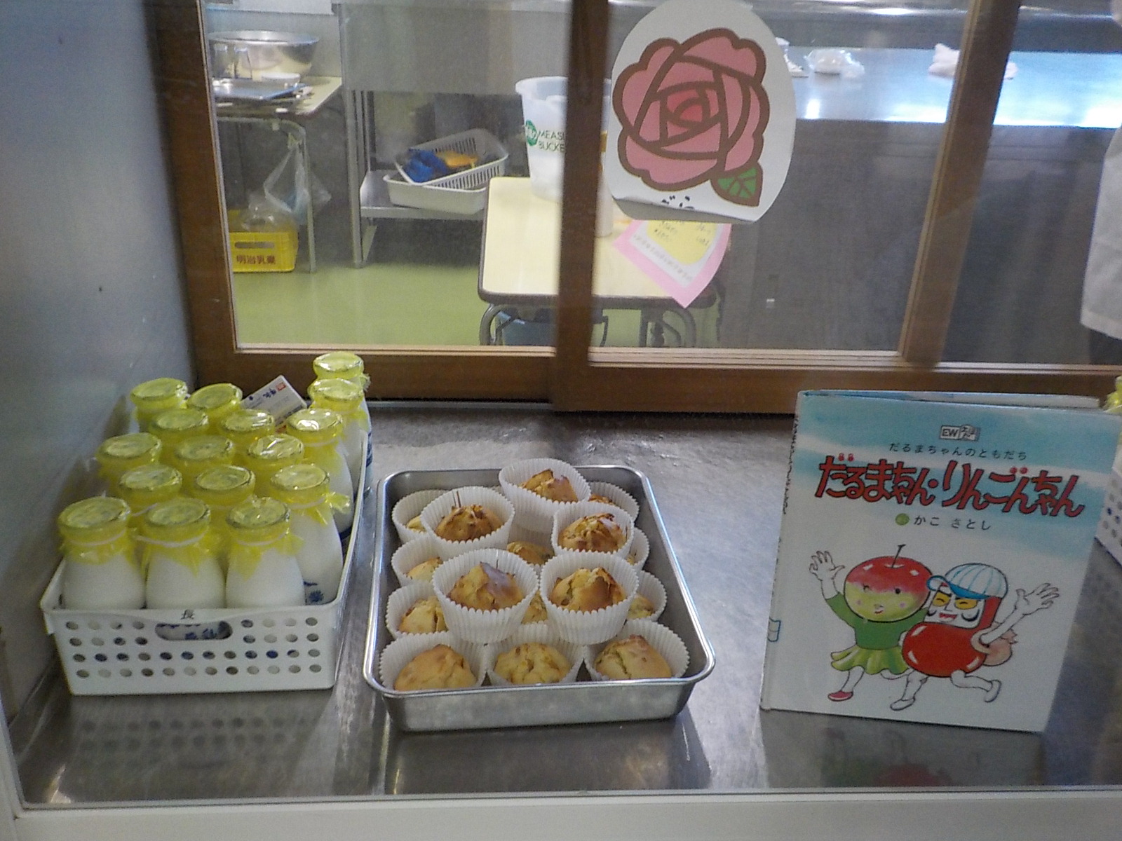 ・午睡明けに給食室を覗きながら、「あ、りんごだ!」とマフィンとビジュアルに驚いた声が上がりました。