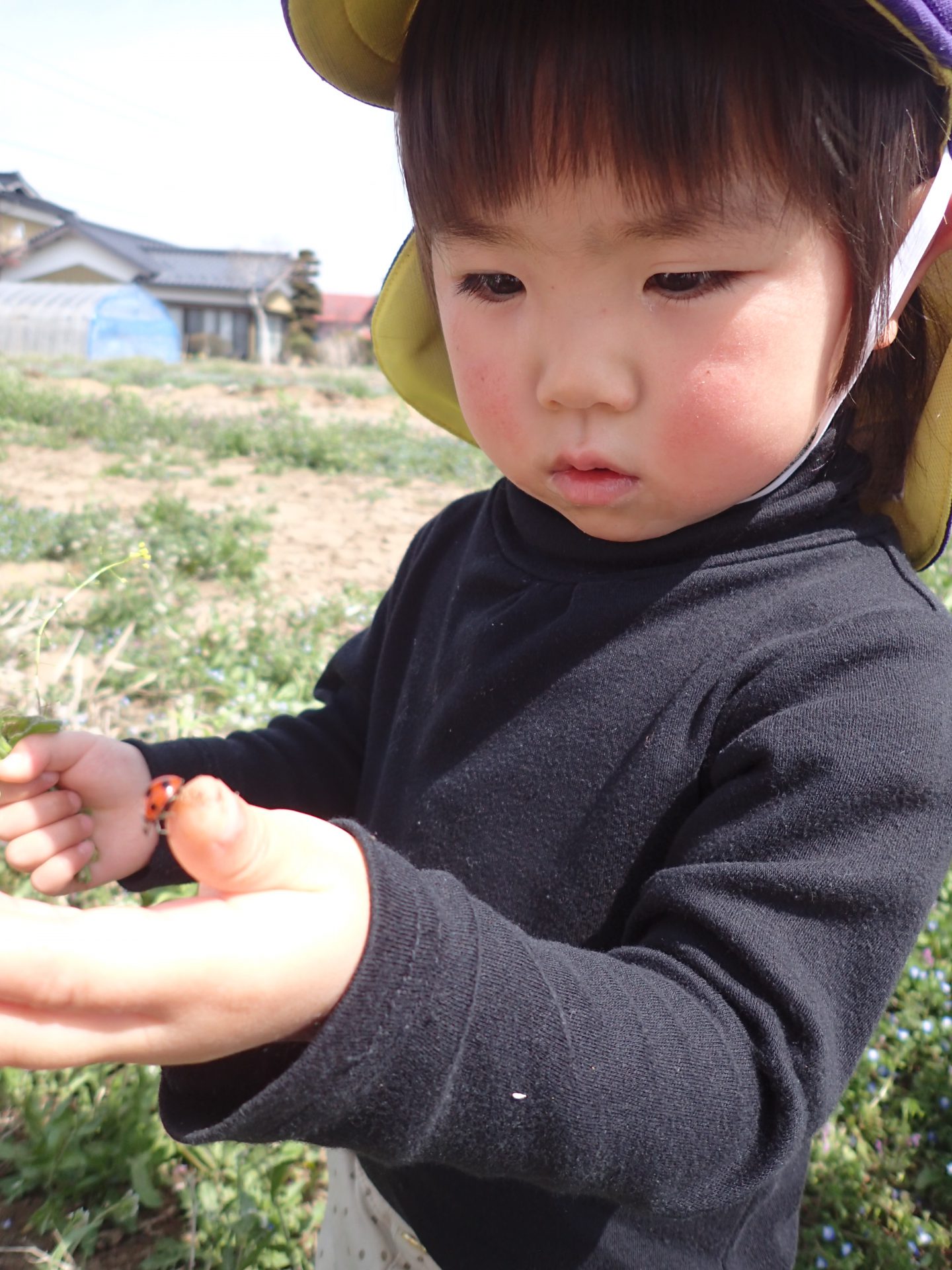 春探し③「見て! 見て! てんとう虫を見つけたよ!!」