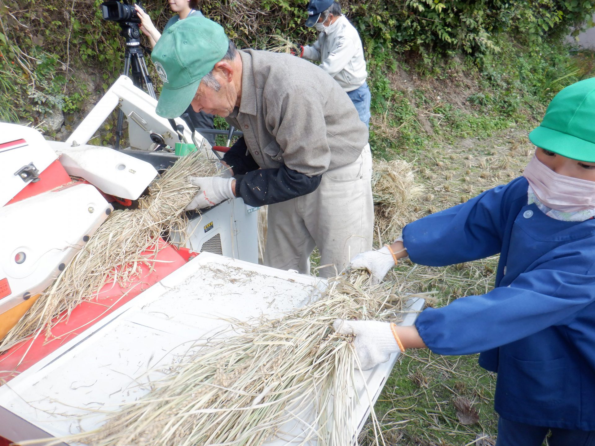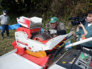 張り切って、次々と稲を運ぶので、熊谷さんも脱穀機も大忙しです。