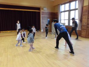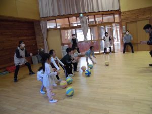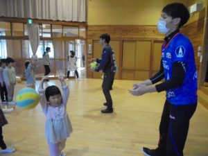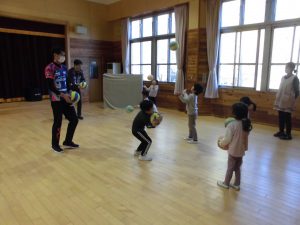 ボールに触れ、投げてキャッチをしたり、パスの基礎を教わったりしました。