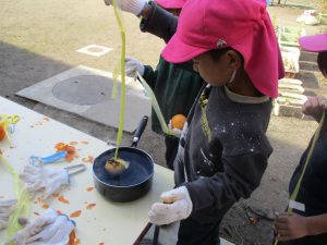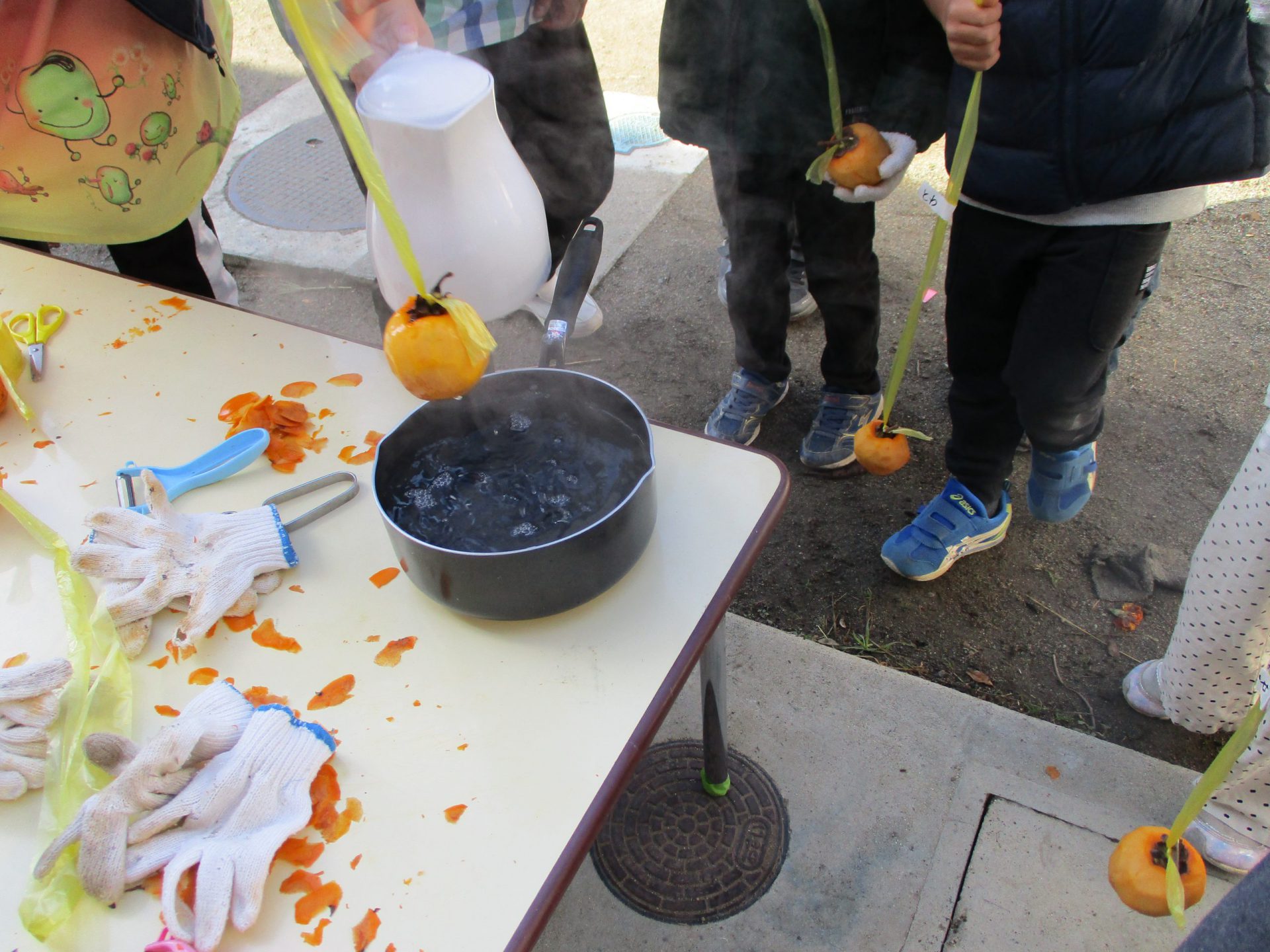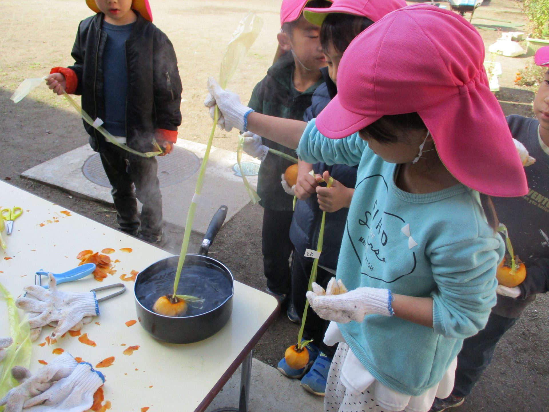みんなむけたら、熱湯消毒するよ。