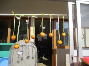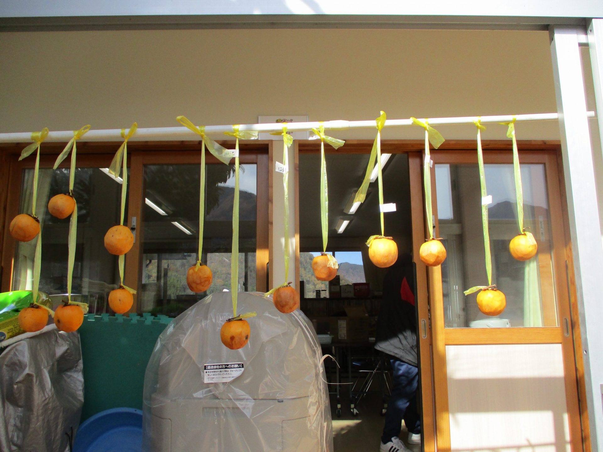 「柿のカーテンみたいだね」熱湯消毒してあるので、なるべく触らないでね~~✋❌