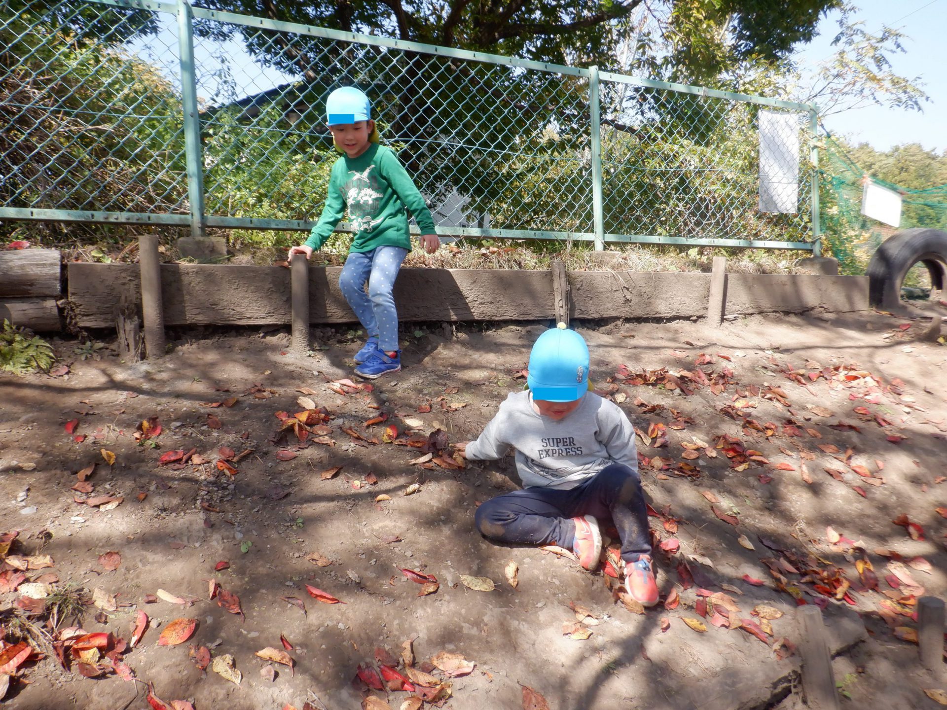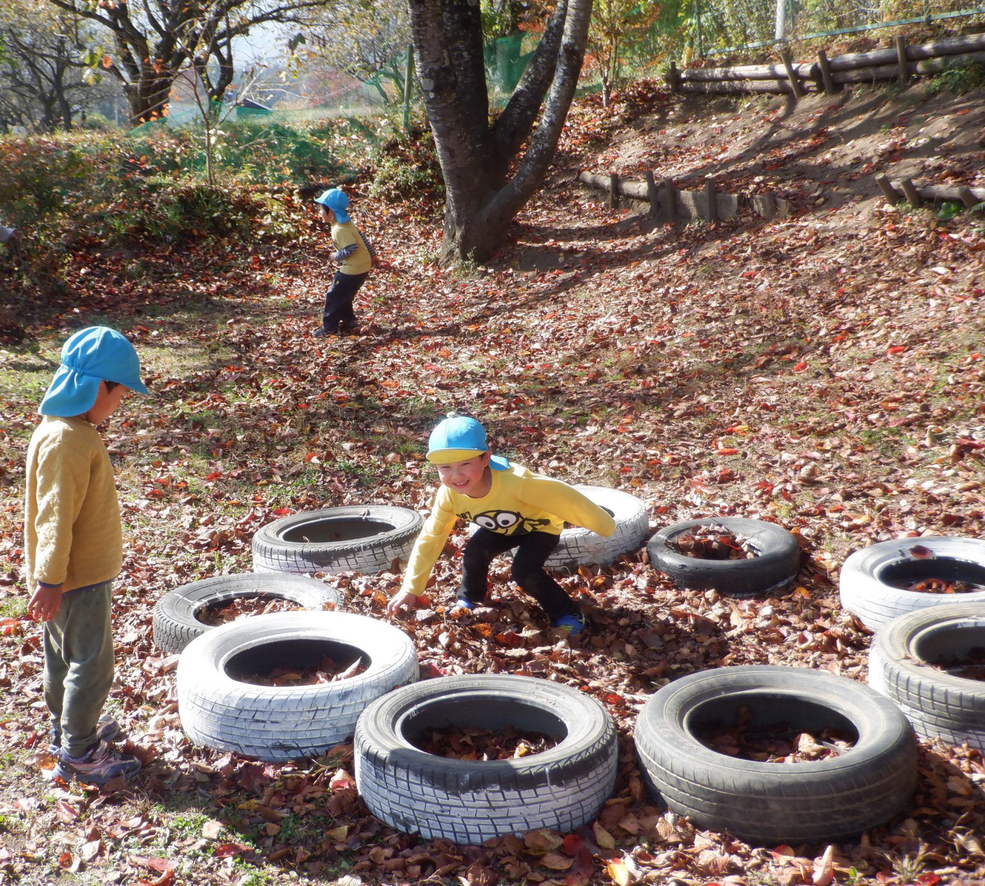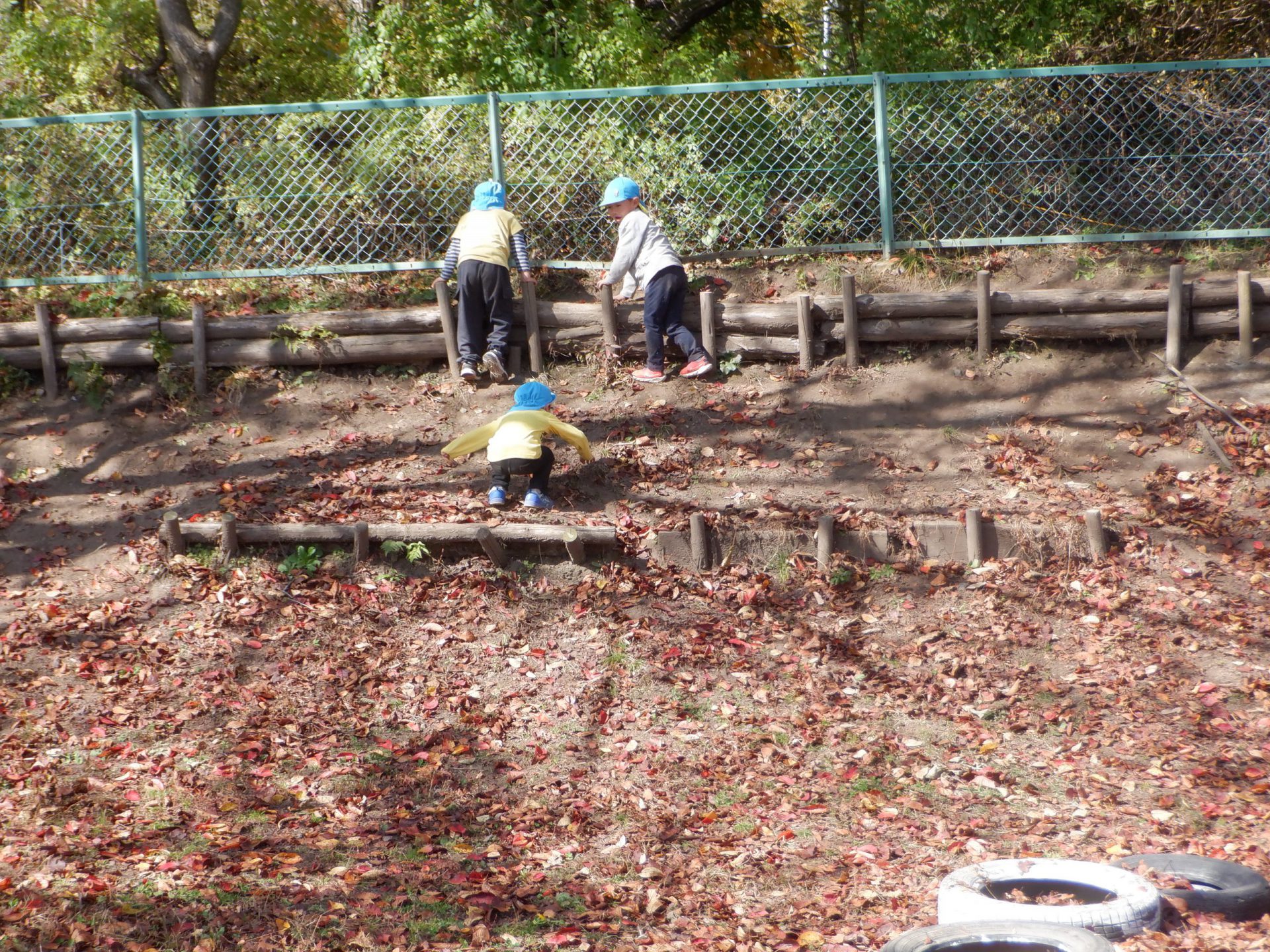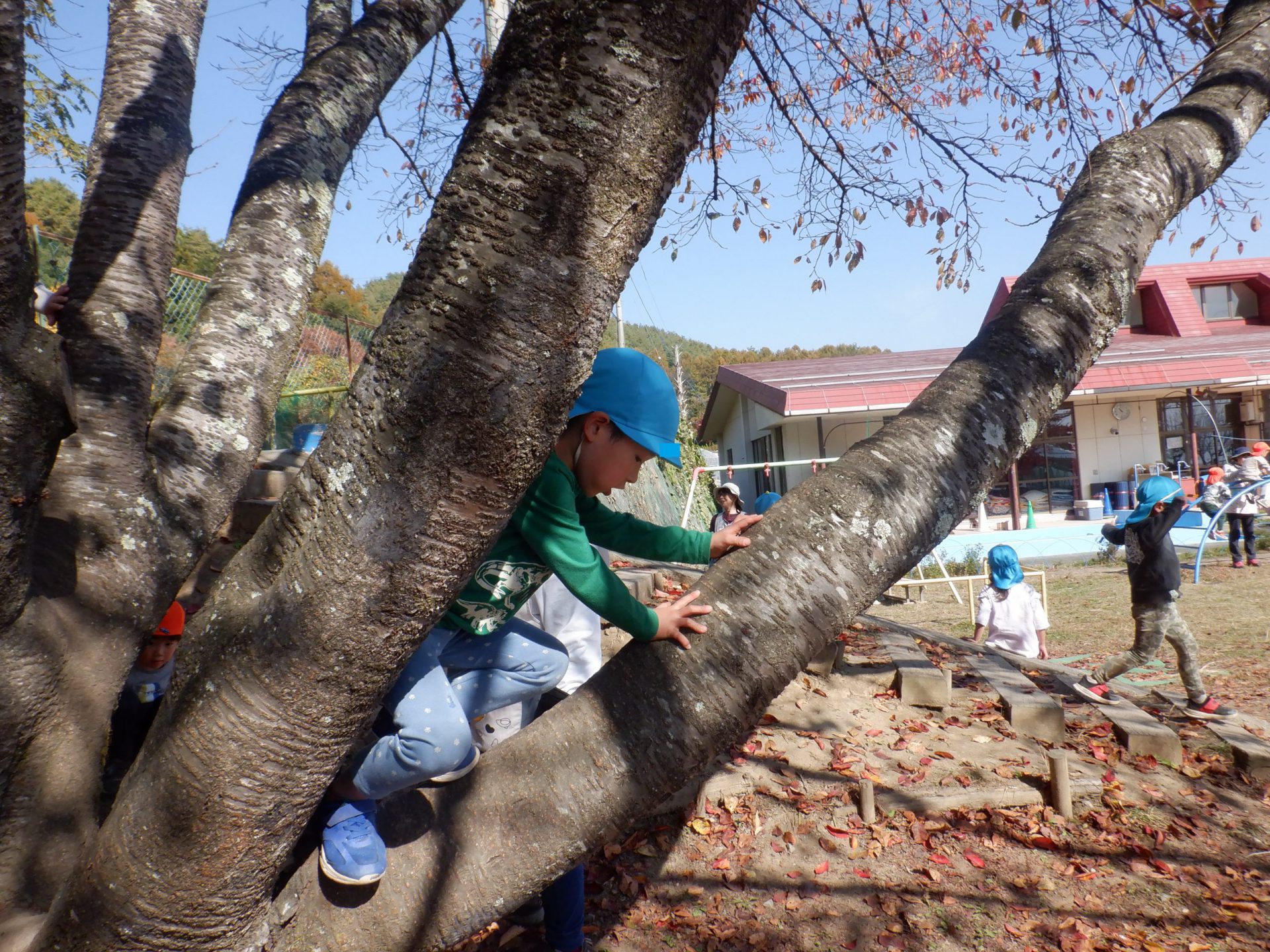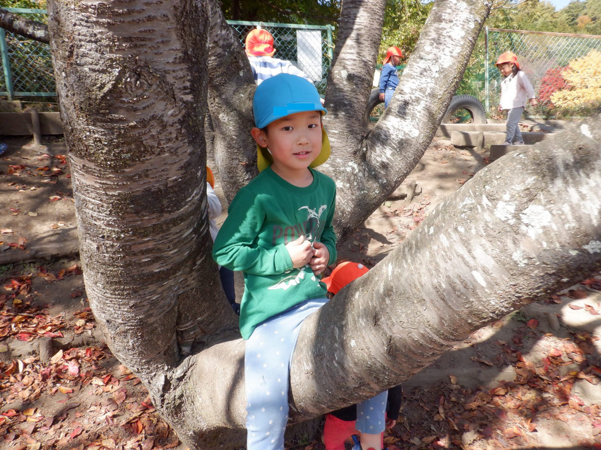去年はただただ目新しい遊具(滑り台など)に夢中になる姿でしたが、今回は「(知らないお友だちが)はずかしい」と思ったり、大木登りに挑戦してみたりと、繊細さと大胆さが入り混じった姿が見られました。どんな感情であれ、気持ちが大きく動くのは素敵な事ではないでしょうか。