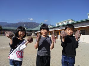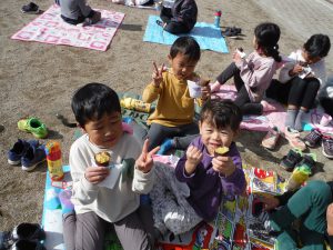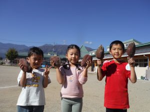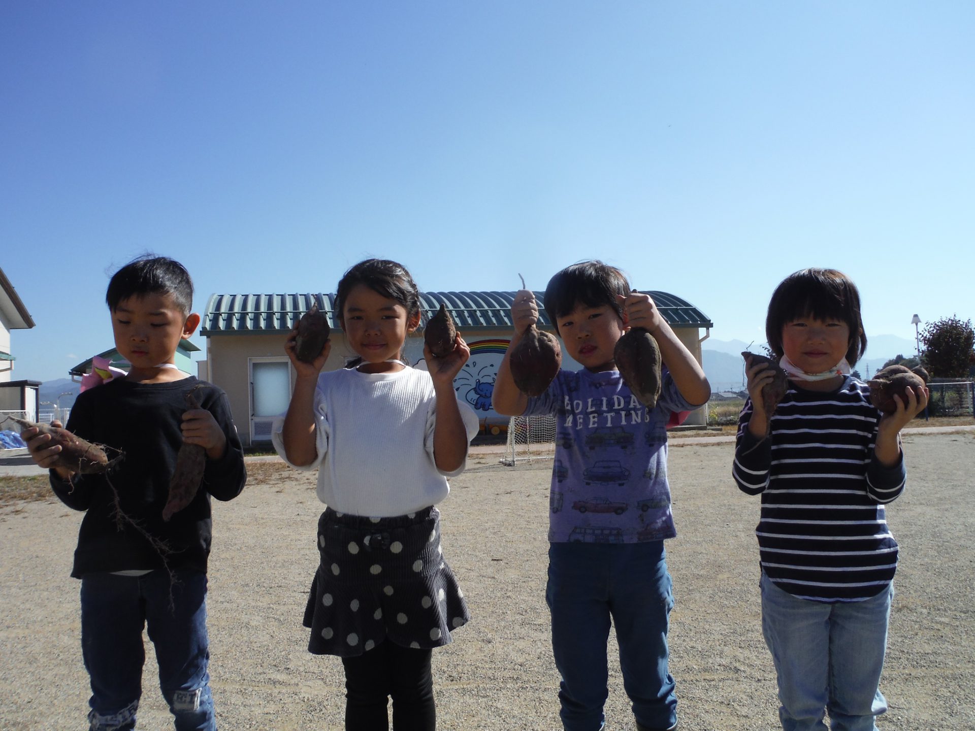 さつまいも掘りから、食べること以外にも遊びを通して気付いたことがたくさんありました。「やりたい・やってみよう・こんなこともできるんだ」を実現することで、経験値もあがり、考え合って周りに広げ、楽しさを共有し合う子どもたちの姿がよく見られた活動でした。この経験が、今後の意欲にもつながってくれることを願いたいと思います。