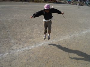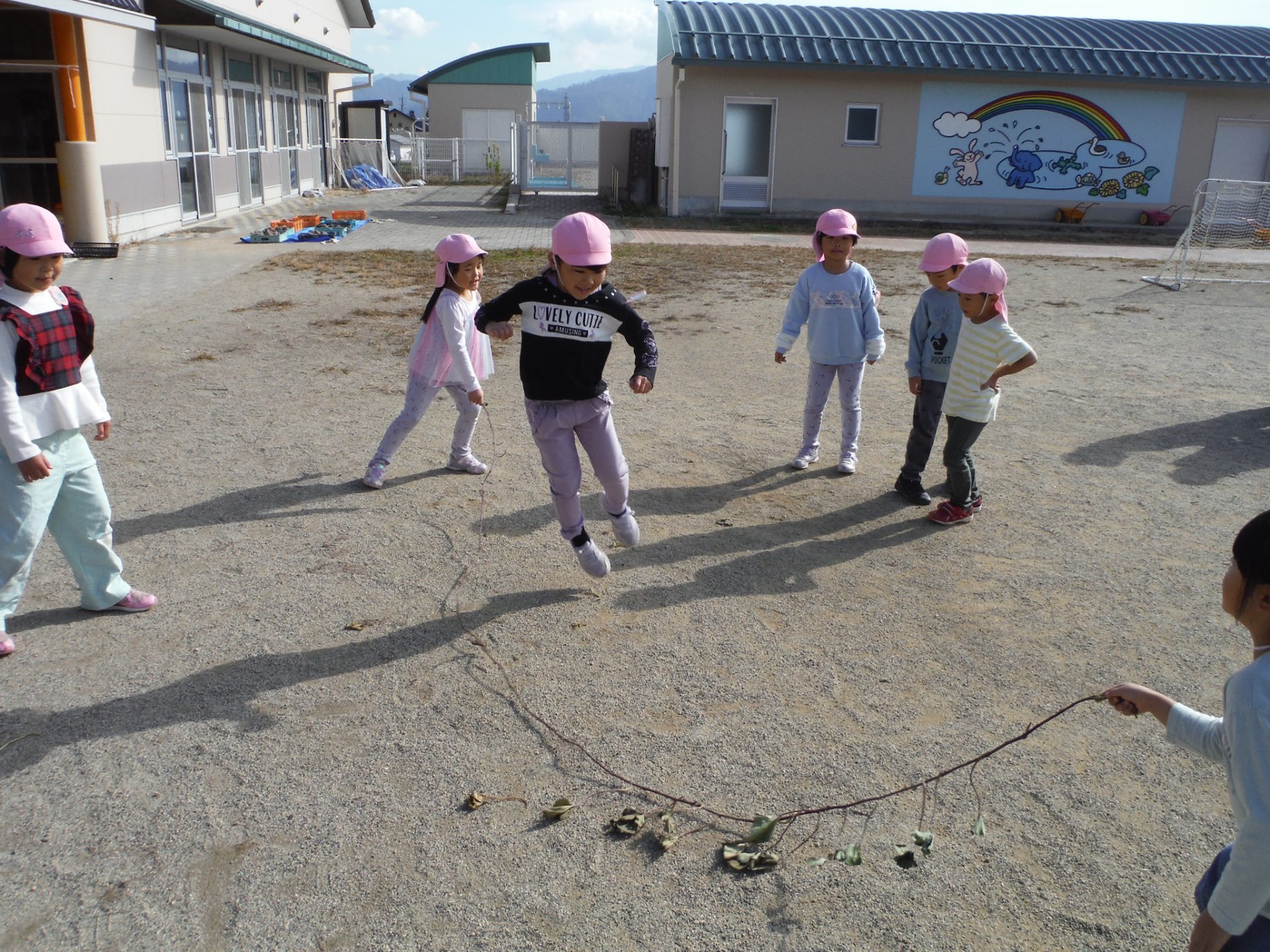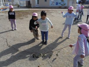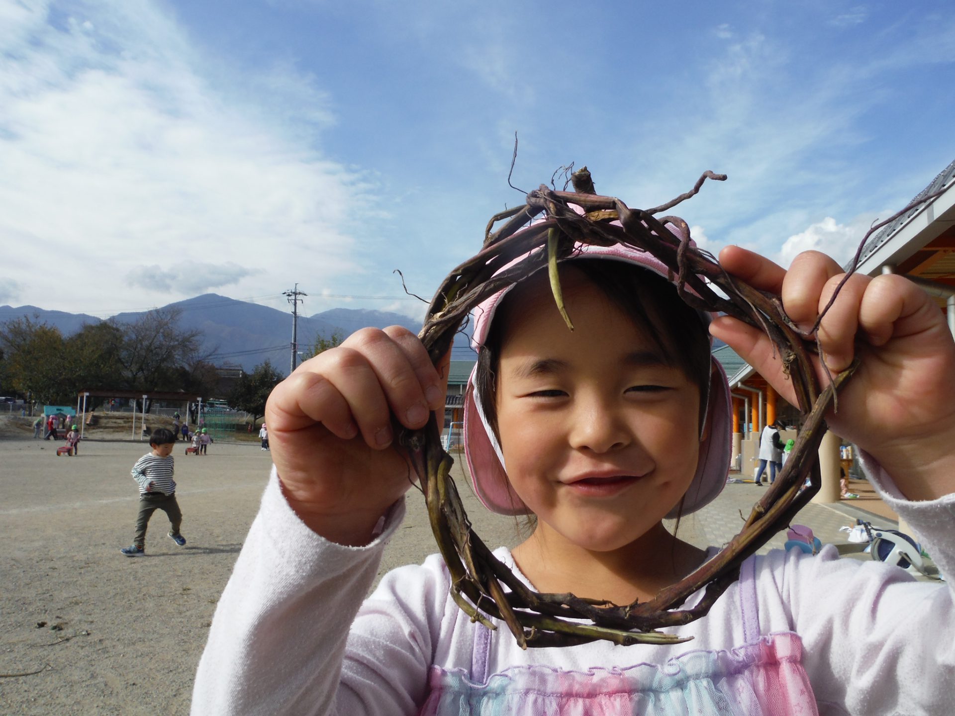 食べるだけではなく、さつまいものツルにも興味を示した子どもたち、友達と一緒に考え合って、なわとびやつなひき、リース作りなど各々に楽しみ会いました。