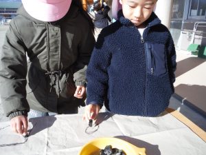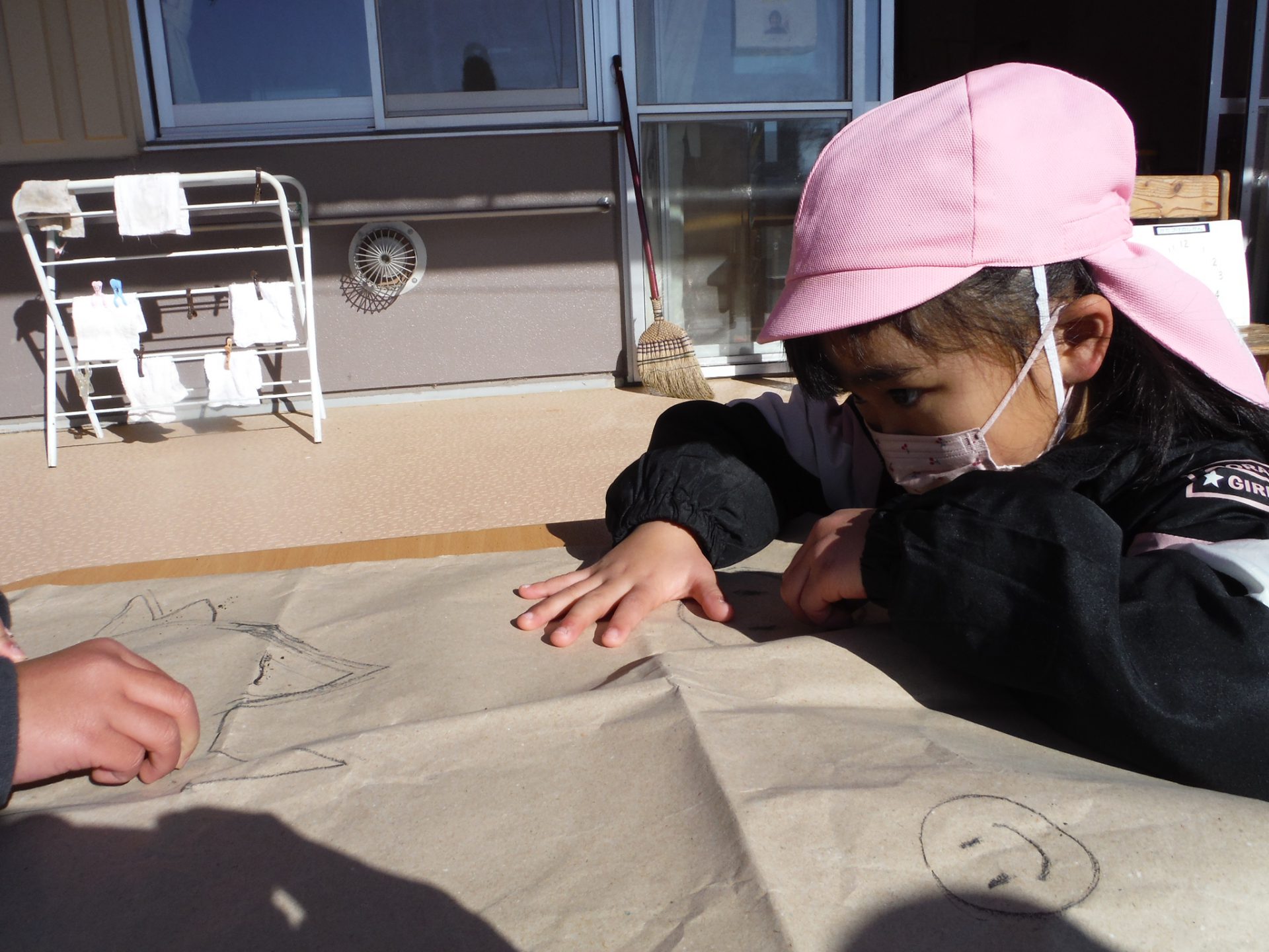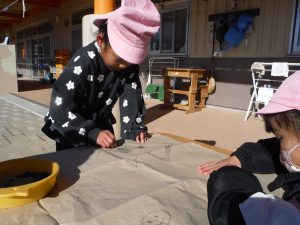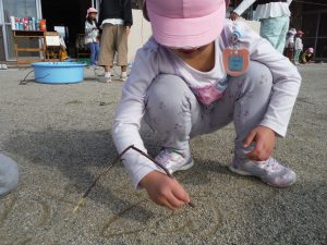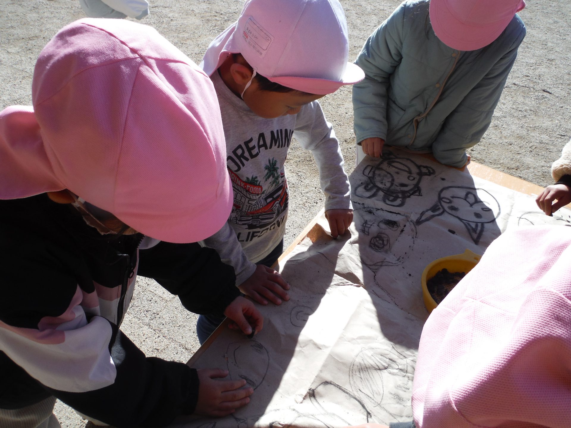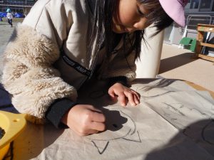 やきいも会の後に出た、炭を使ってお絵かきも楽しみました。