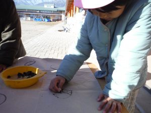 やきいも会当日は、「やきいもを配りたい。焼きたてのお芋は小さい子達持てないよね、袋を作ろう」とみんなで準備を進めました。