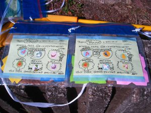 シールラリーには「どんぐりを探そう」「赤や黄色の葉っぱをみつけよう」「大きな木を見つけよう」「虫をみつけよう」などの項目を入れ、自然に触れ合えるようにしました。