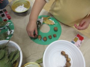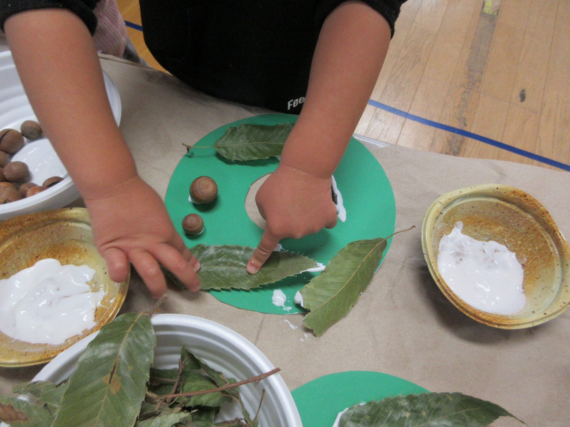 どんぐりの置き方をいろいろ考えながら、作っている子もいます。
