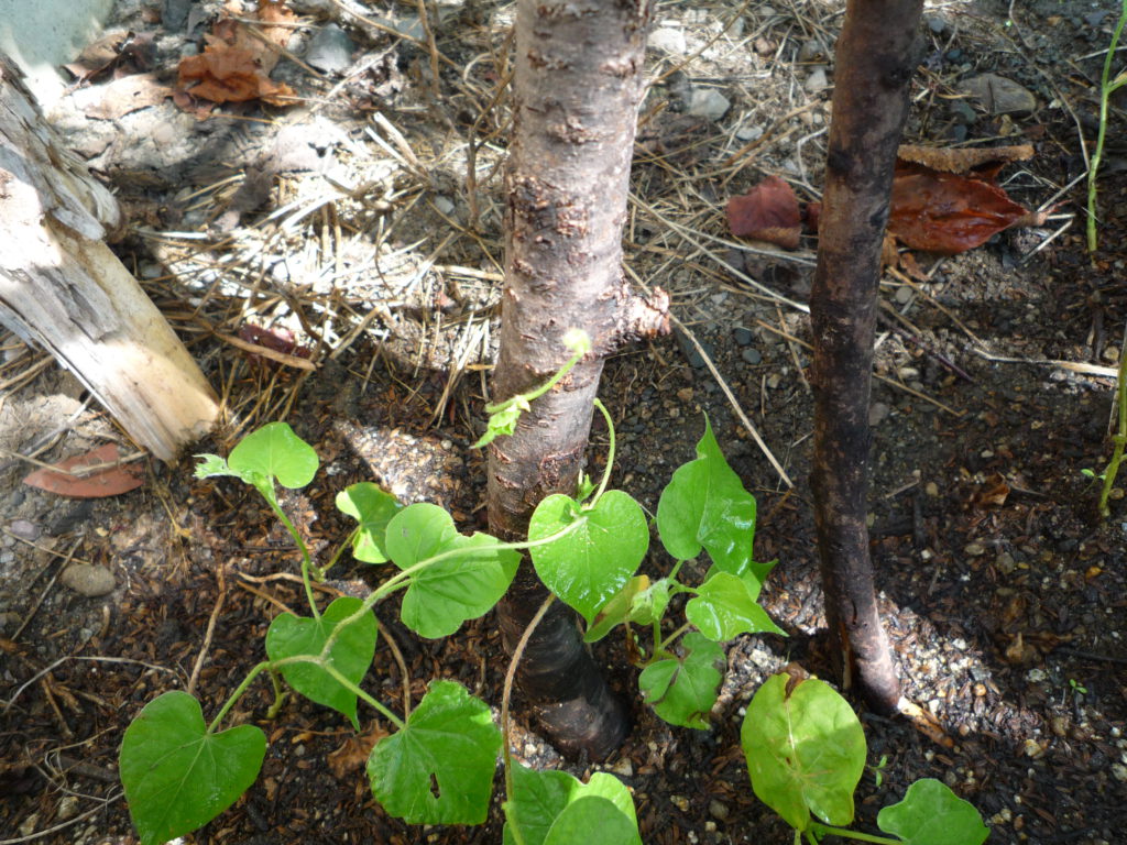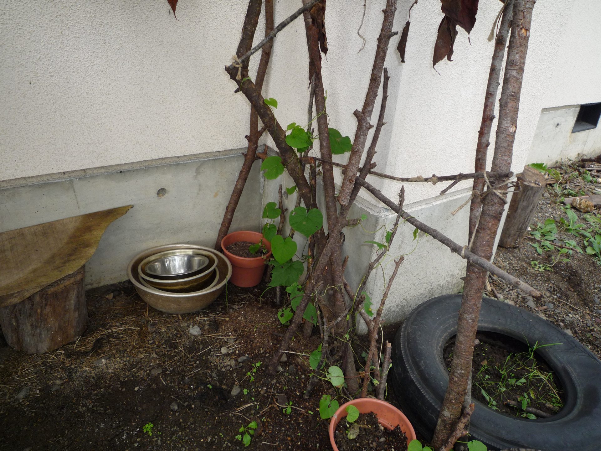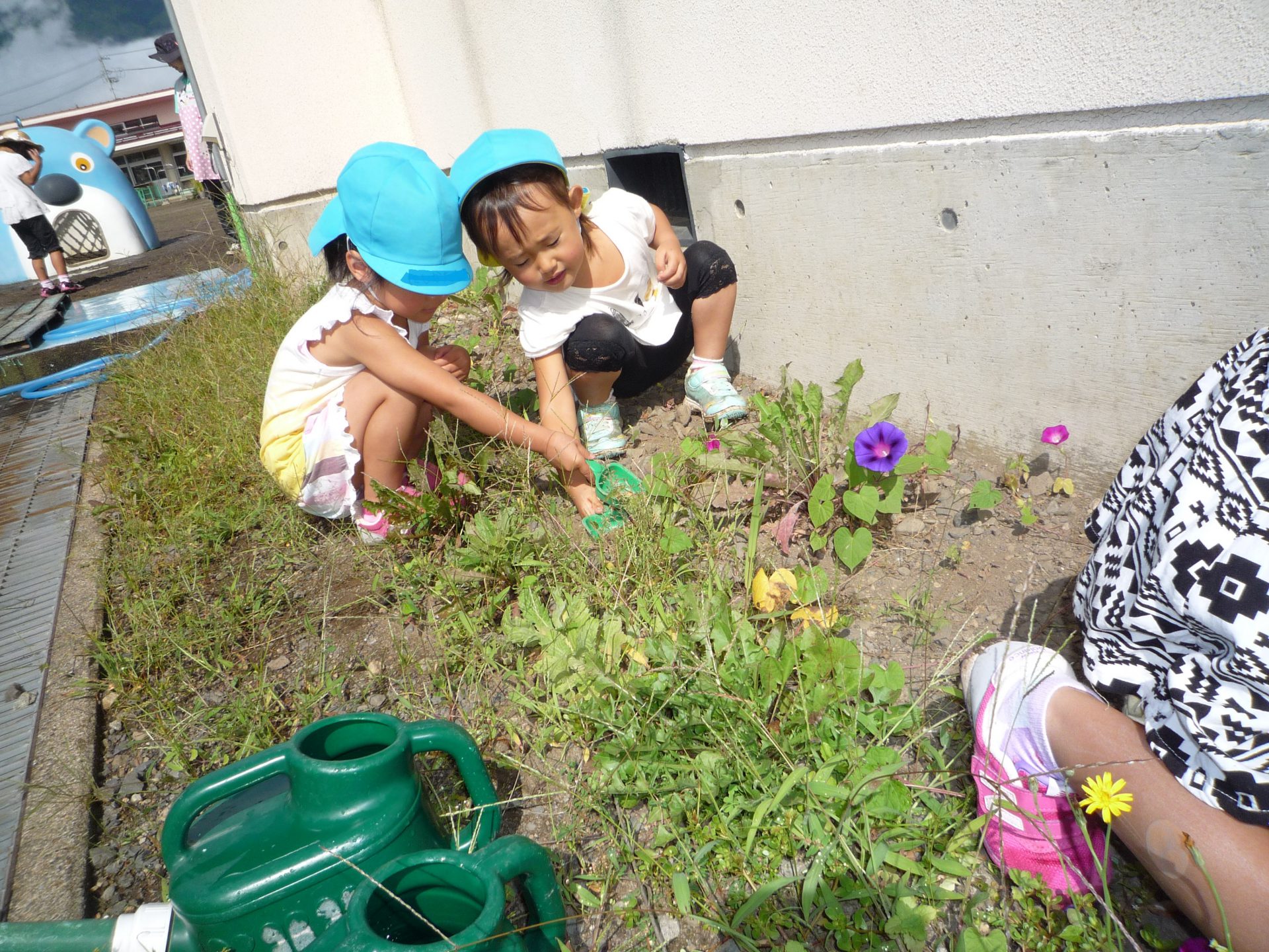 時々、地面に生えているあさがおを見つけるとシャベルで掘ってはっぱのおうちに植えています。
