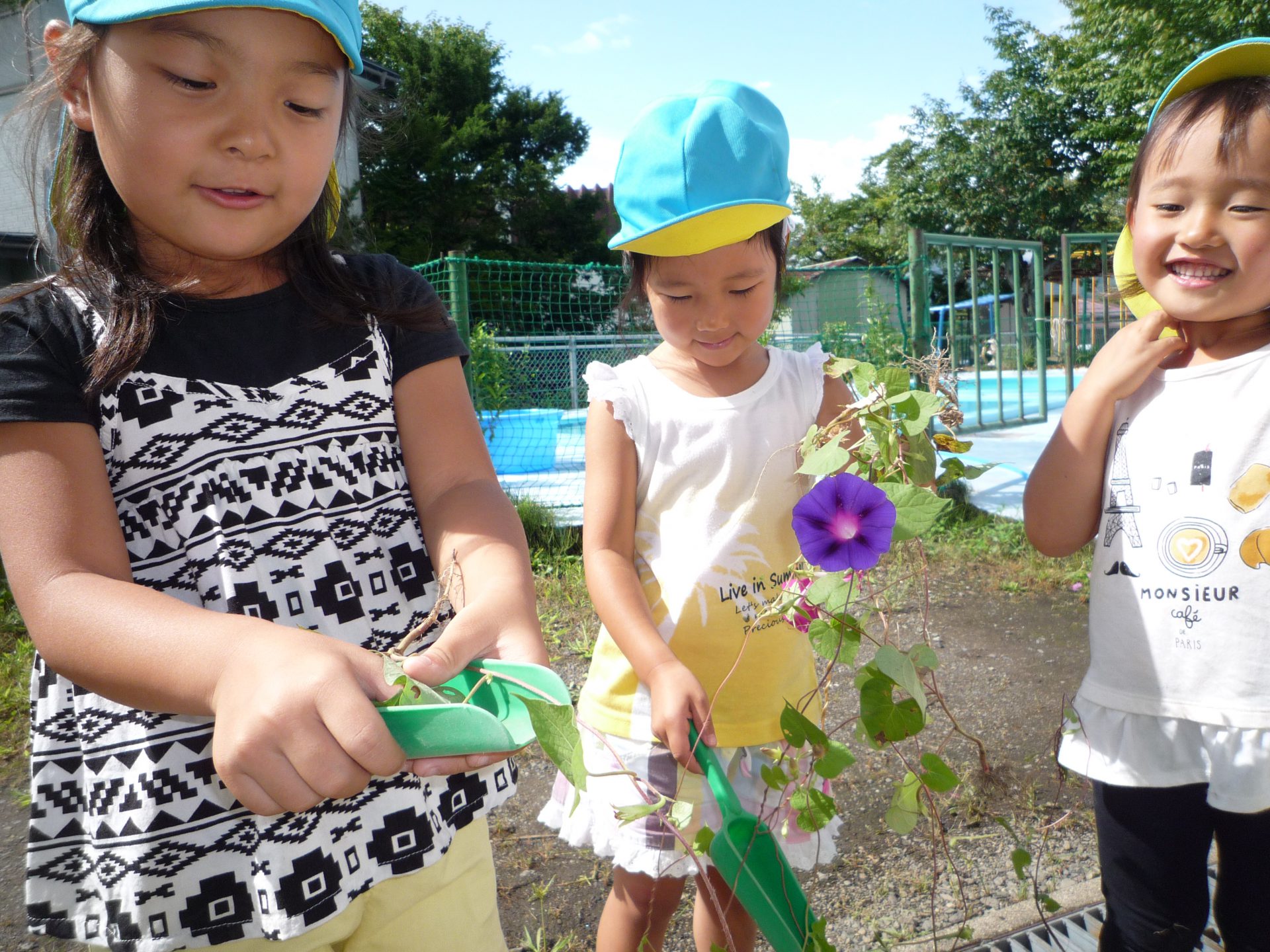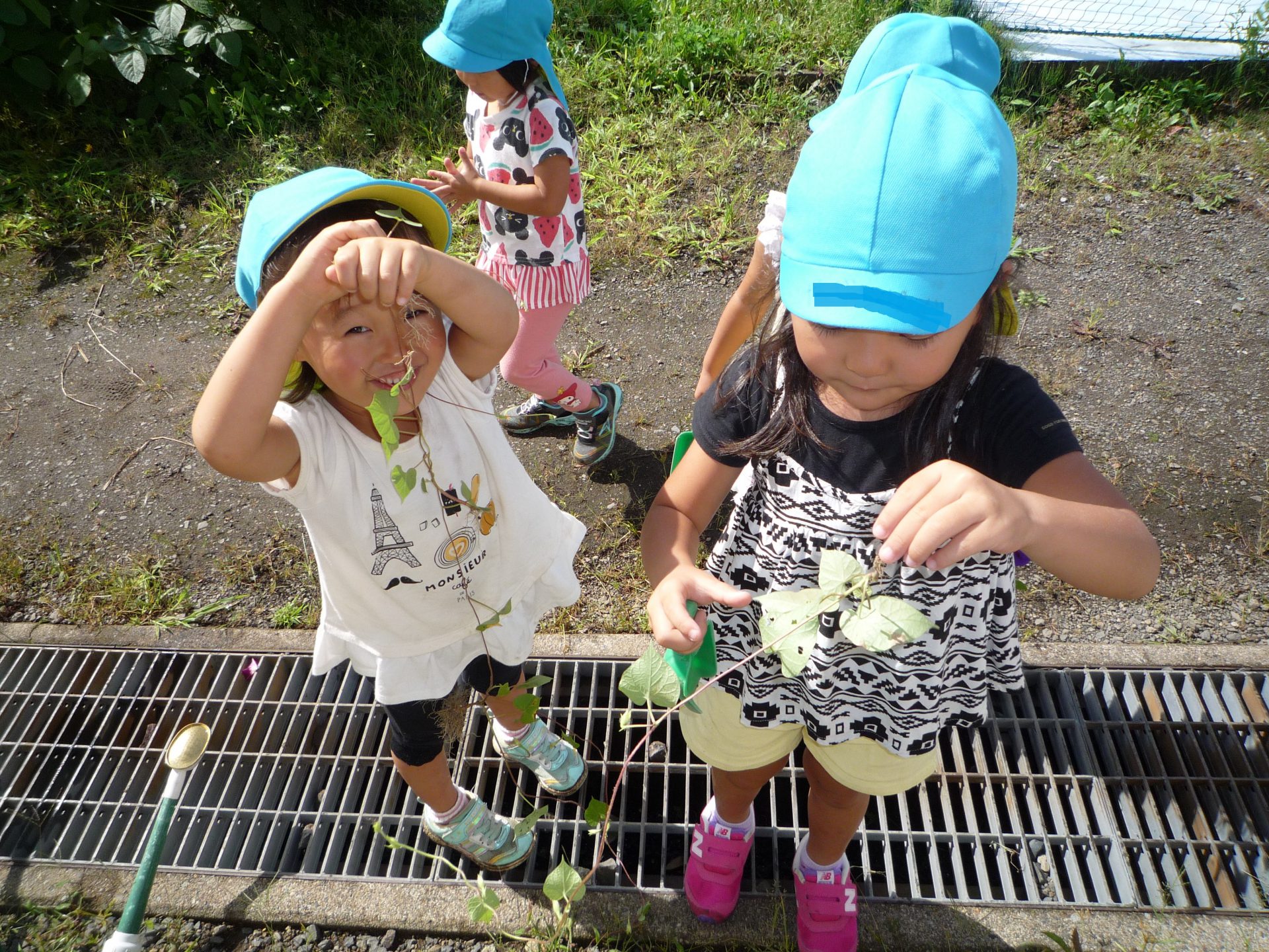 はっぱのおうちは子ども達の植えたあさがおがぐんぐん伸びてきました。