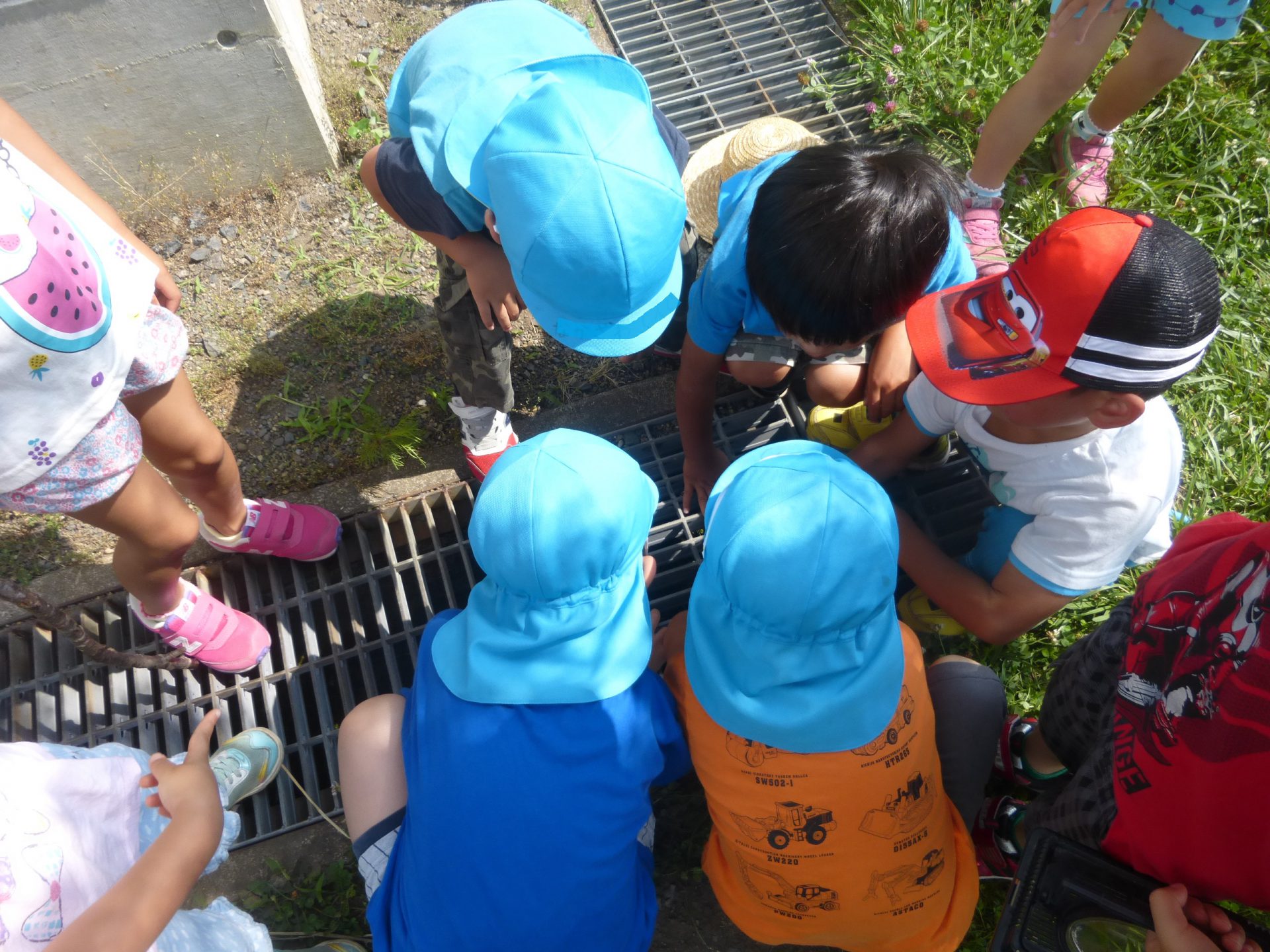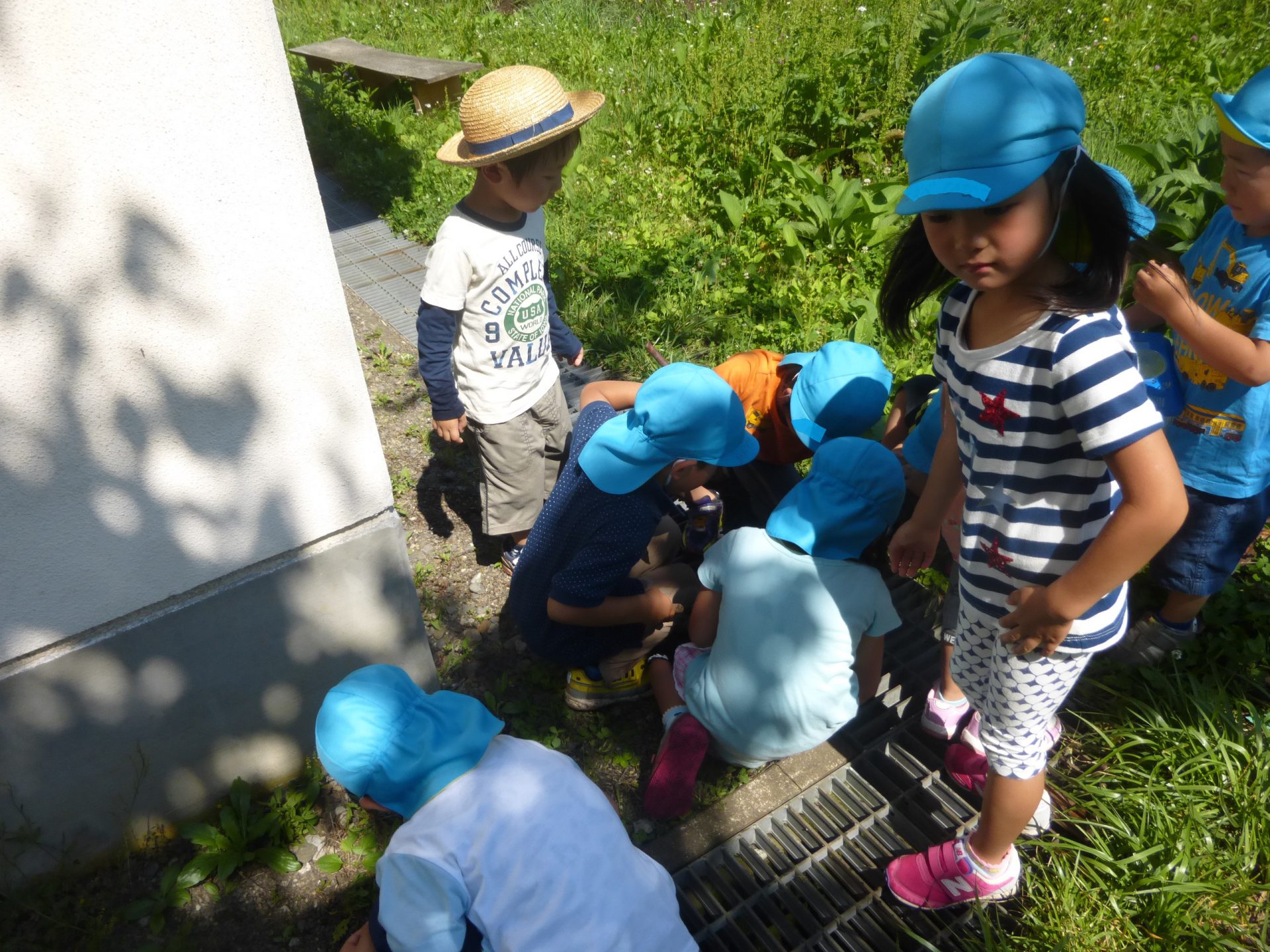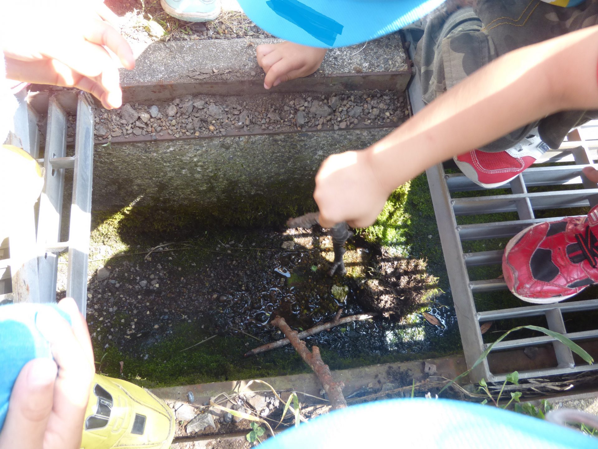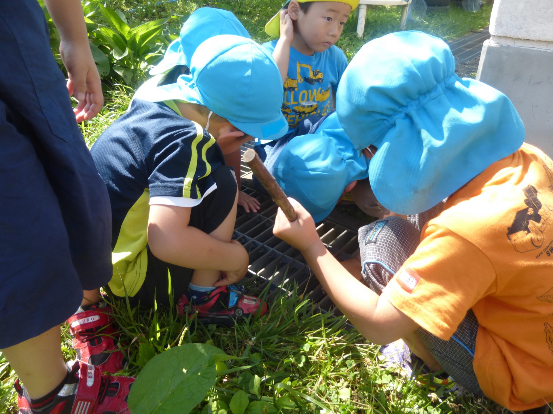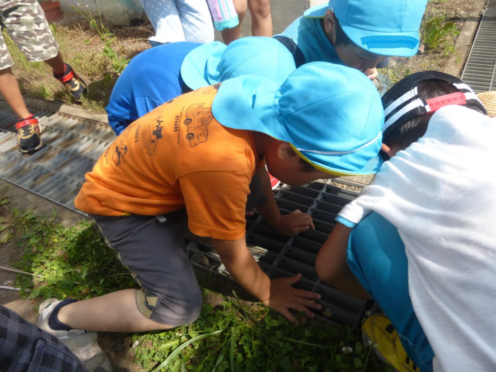 どうやらクワガタを出して見ていた子ども達の一人が側溝の中にクワガタを落としてしまったようです。