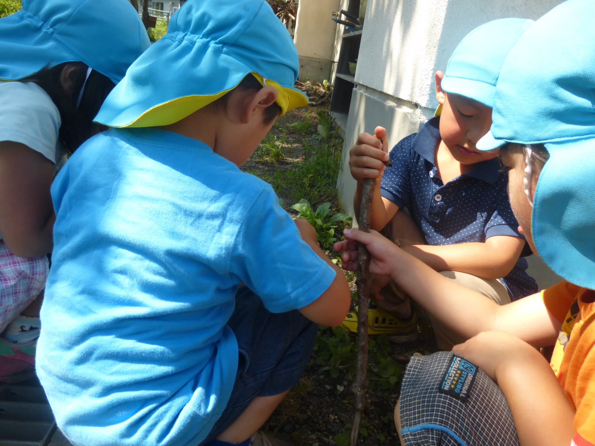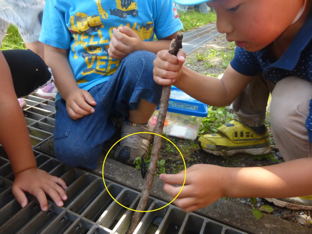 そして、生き物に興味がある4才児だからこそ、虫の特性を知った上で木の棒を迷いなく持ってきたのだと思います。