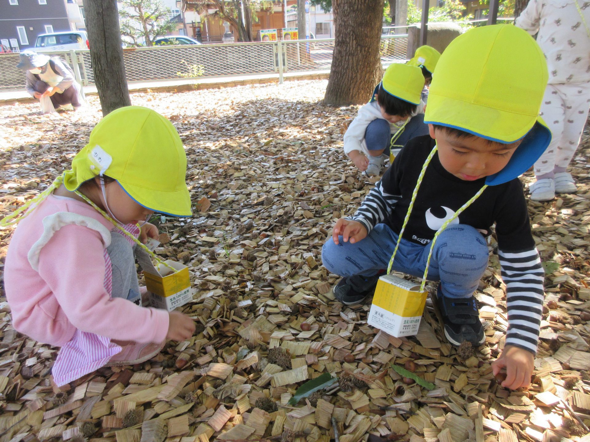 ・どんぐりには、“大きくて丸々とした形”と”細長い形”があると形の違いに気づいて、好きな形のどんぐりだけを黙々と集めている子もいました。