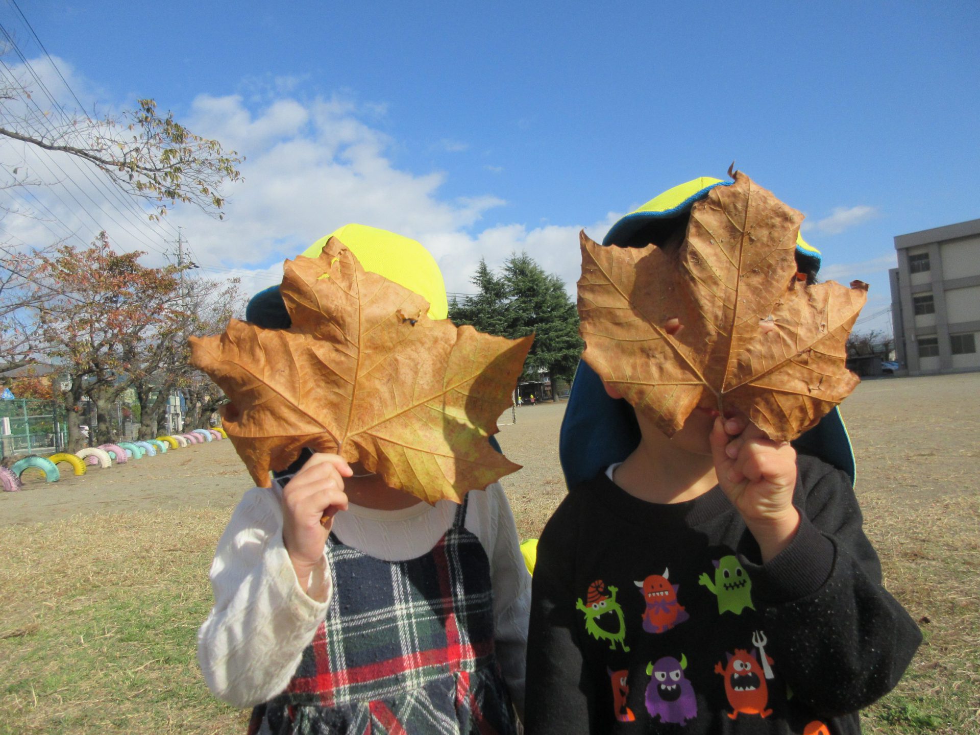 ・秋の散歩では、葉っぱの色が変化していくことに気づいてほしいと思い、保育者が「赤色の葉っぱだね」と声をかけていましたが、保育者よりも子ども達の方が先に気づいて、葉っぱや匂い(銀杏)など、気づいたことを教えてくれるようになりました。