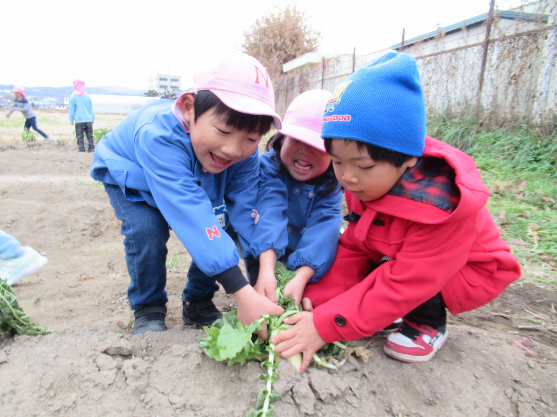 白い部分が見えてくると「もう食べられるね!」と食べられるようになった事を自分達で感じられるようになっており、畑活動での成長が感じられました。