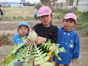 抜いてみたら小ぶりな大根もありましたが「美味しそう!」と自分達で育てた野菜のおいしさを知っている子ども達は見ただけでわかるようでした。