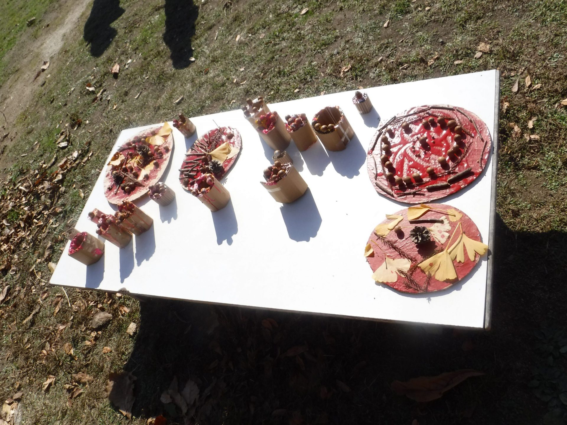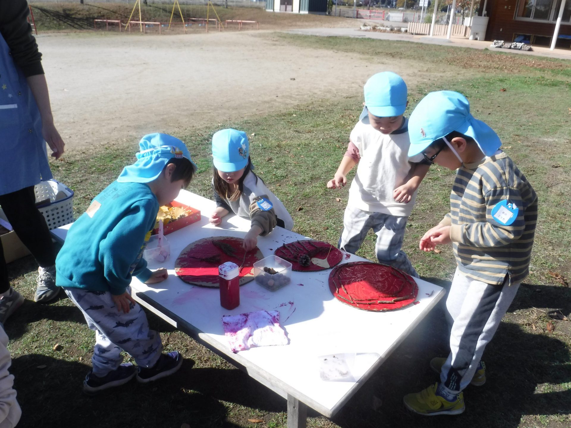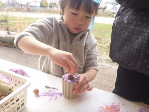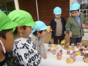 また園庭でもイチョウの葉っぱや、プランターで育てた貝細工などなど。