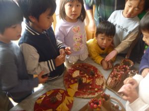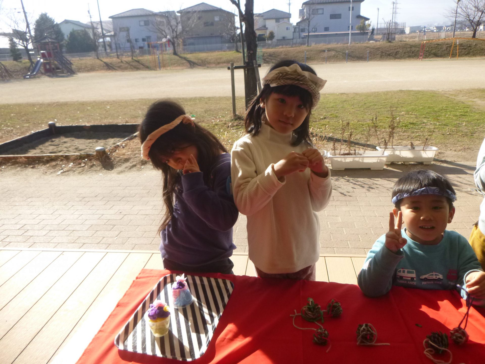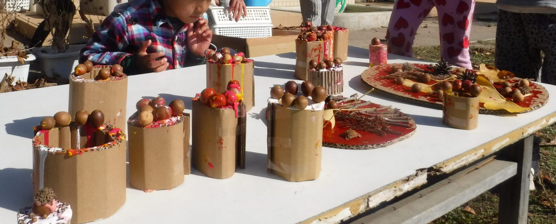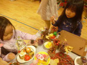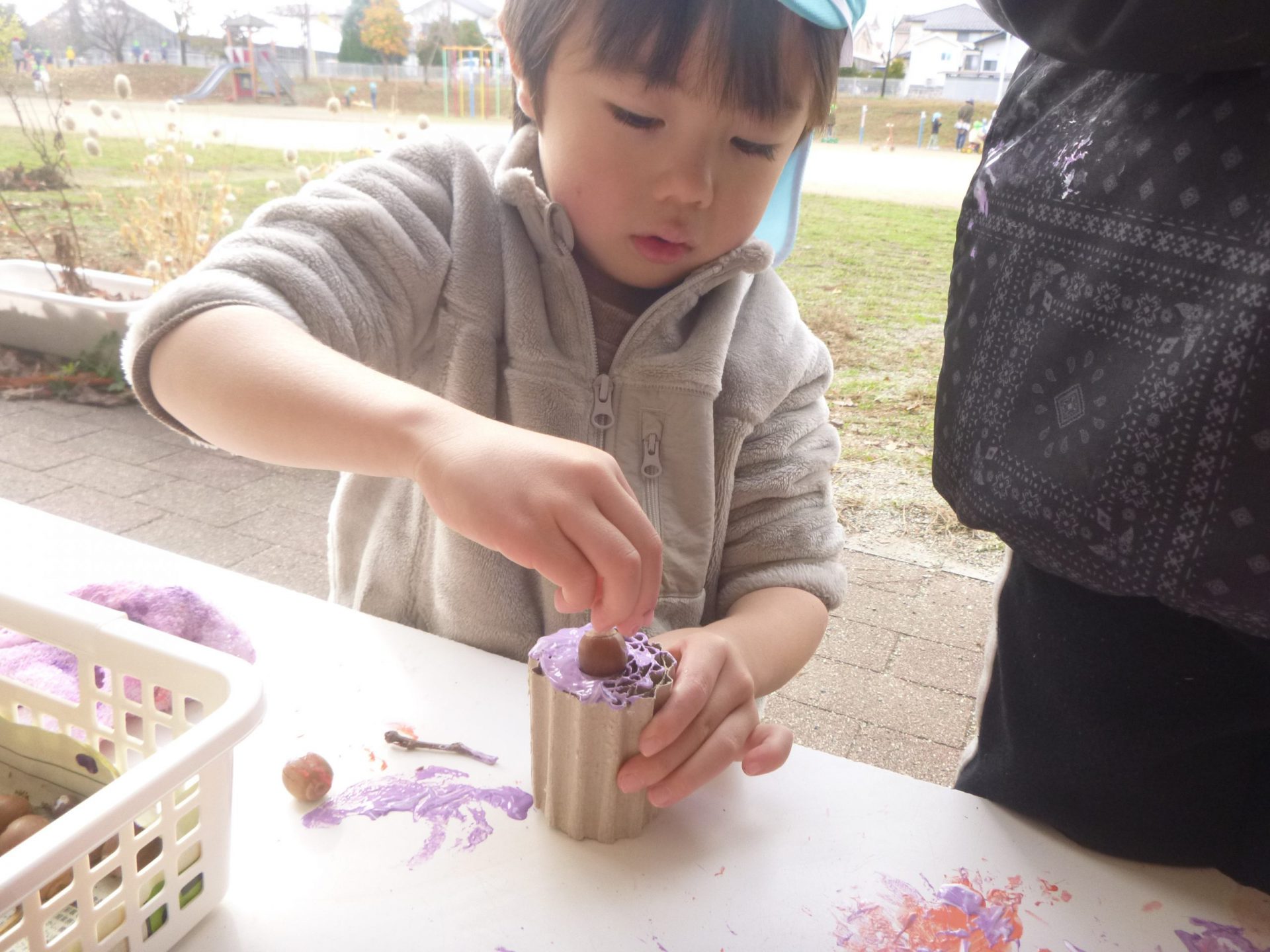 ・季節ならではの自然に触れ、その自然物を使ってさまざまな遊びにつながる・・・子どもの発想は素敵です。自分たちの思いが形になったときの喜びや達成感。それらが自信へと繋がりさらに友だちと協力して遊ぶ楽しさを知っていきます。これからも、できるだけ子どもの声を大切に拾い上げ、丁寧に見守って行きたいと思いました。