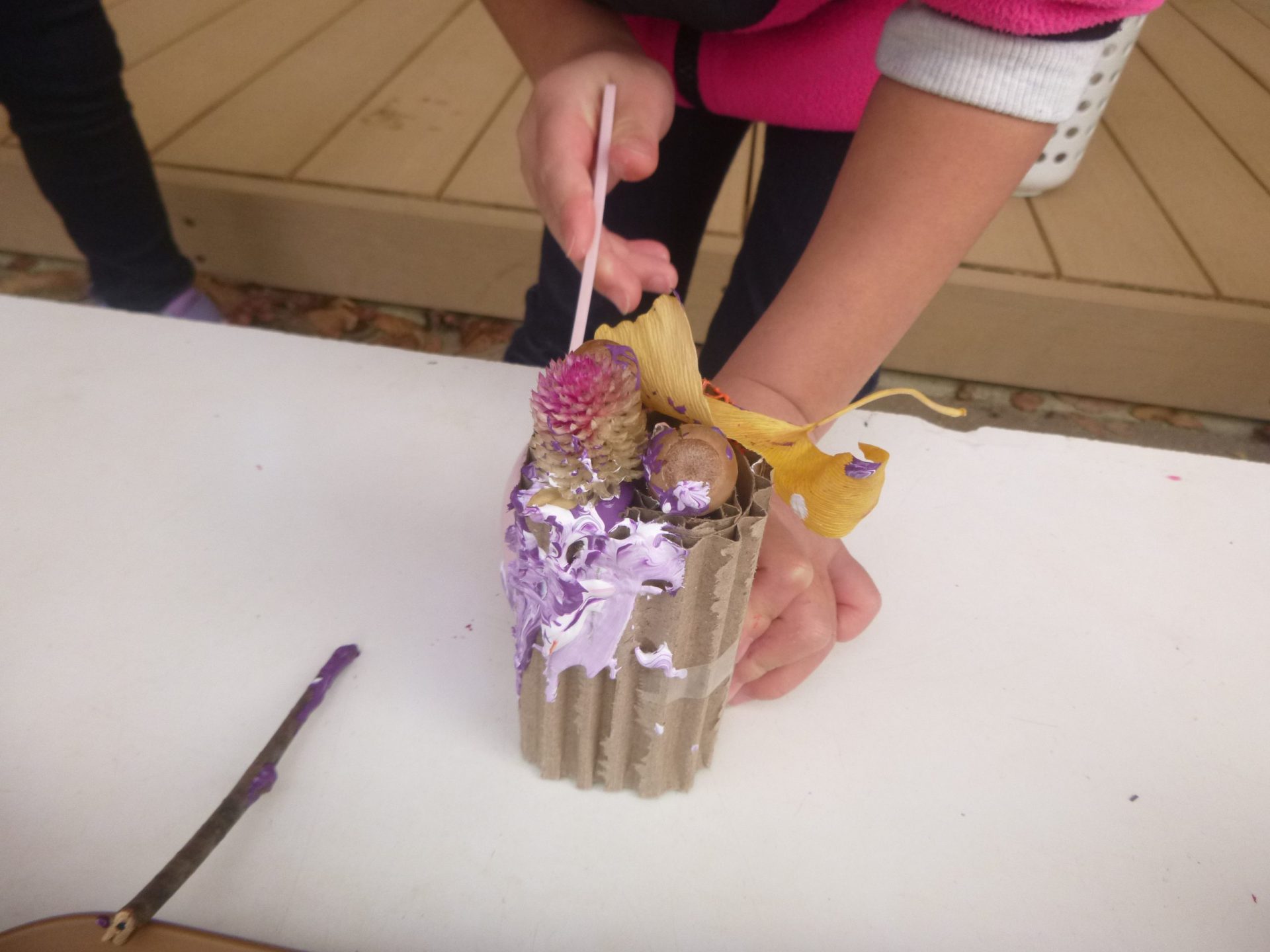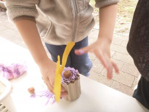 子どもたちが、集めた自然物を使って、やりたかったことができて大満足!!