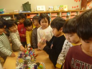 楽しいことに敏感な子どもたち。年中さんの様子にすぐ反応する異年齢の子どもたちなのでした。