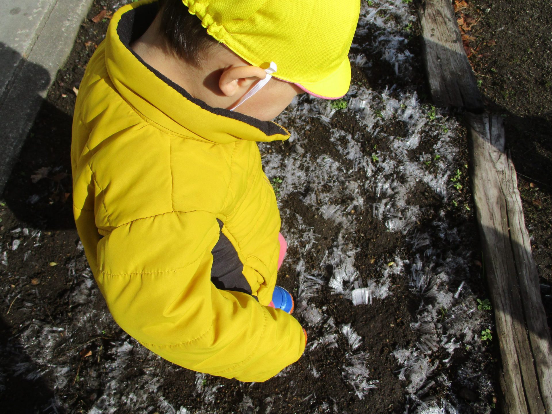 土に霜が降りているのを発見!
