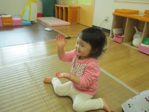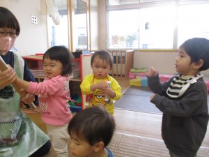 保育士の「よいしょ!」という掛け声に合わせて、手を叩いたり「よいしょ!」と一緒に声を出しながら楽しんでいました。