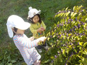 お散歩に行った時に同じつるの実を見つけました。きれいなムラサキシキブの実も発見!実を取るのがとっても楽しいな。
