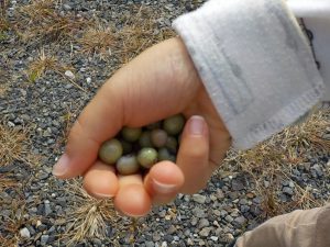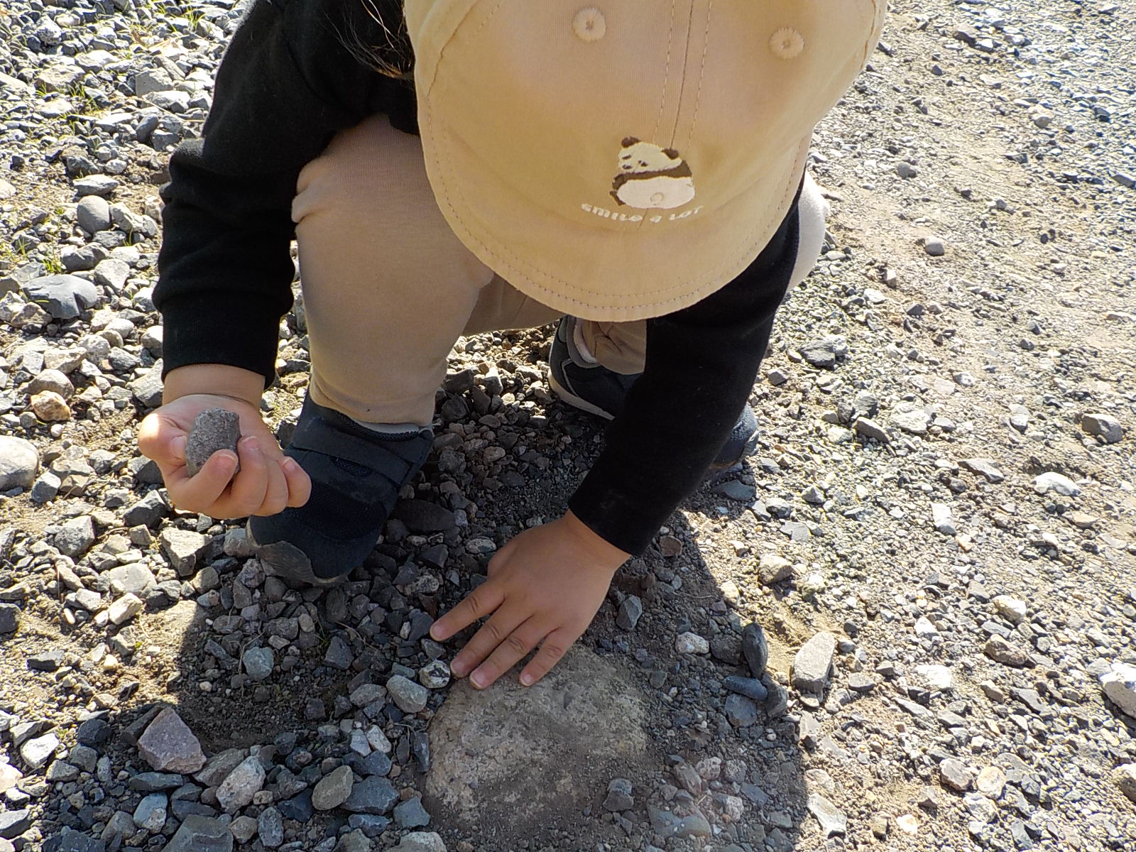 ここにもいいもの見つけた! 大きい石や小さい石・・・いろいろな大きさの石を見つけたよ。