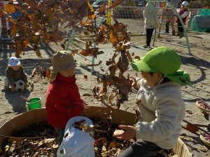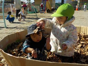 園庭に、大きい組さんが作ってくれた落ち葉のお風呂。