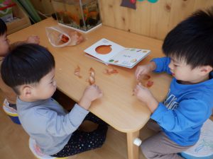 「あか!」「ちゃいろだよ!」と話しはじめます