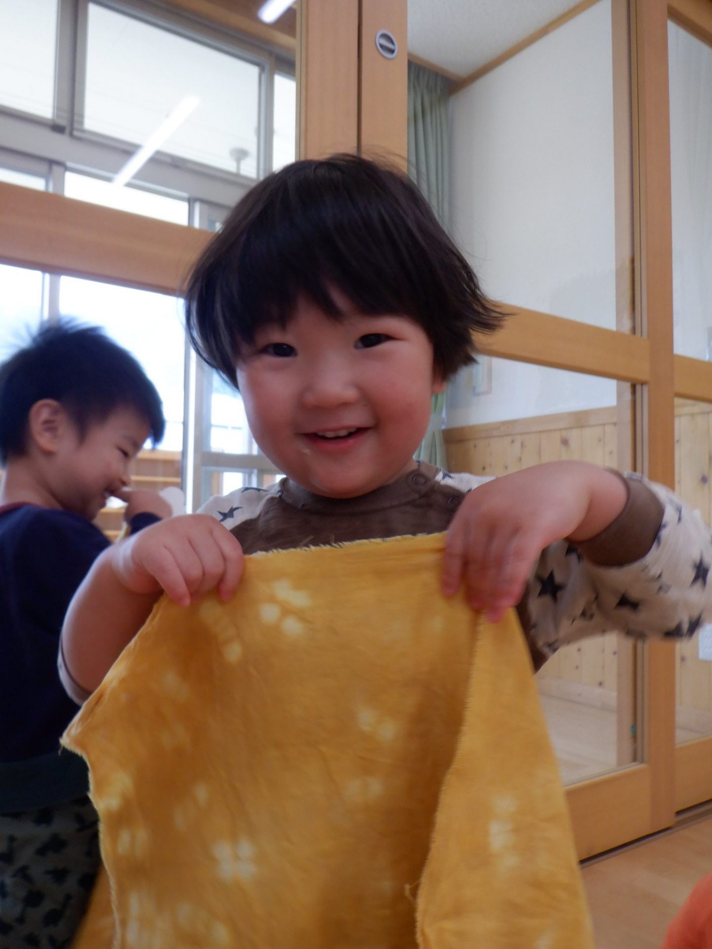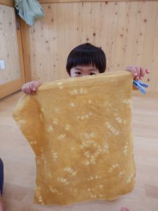 出来上がった自分のハンカチの模様をみて嬉しそうに見せてくれました