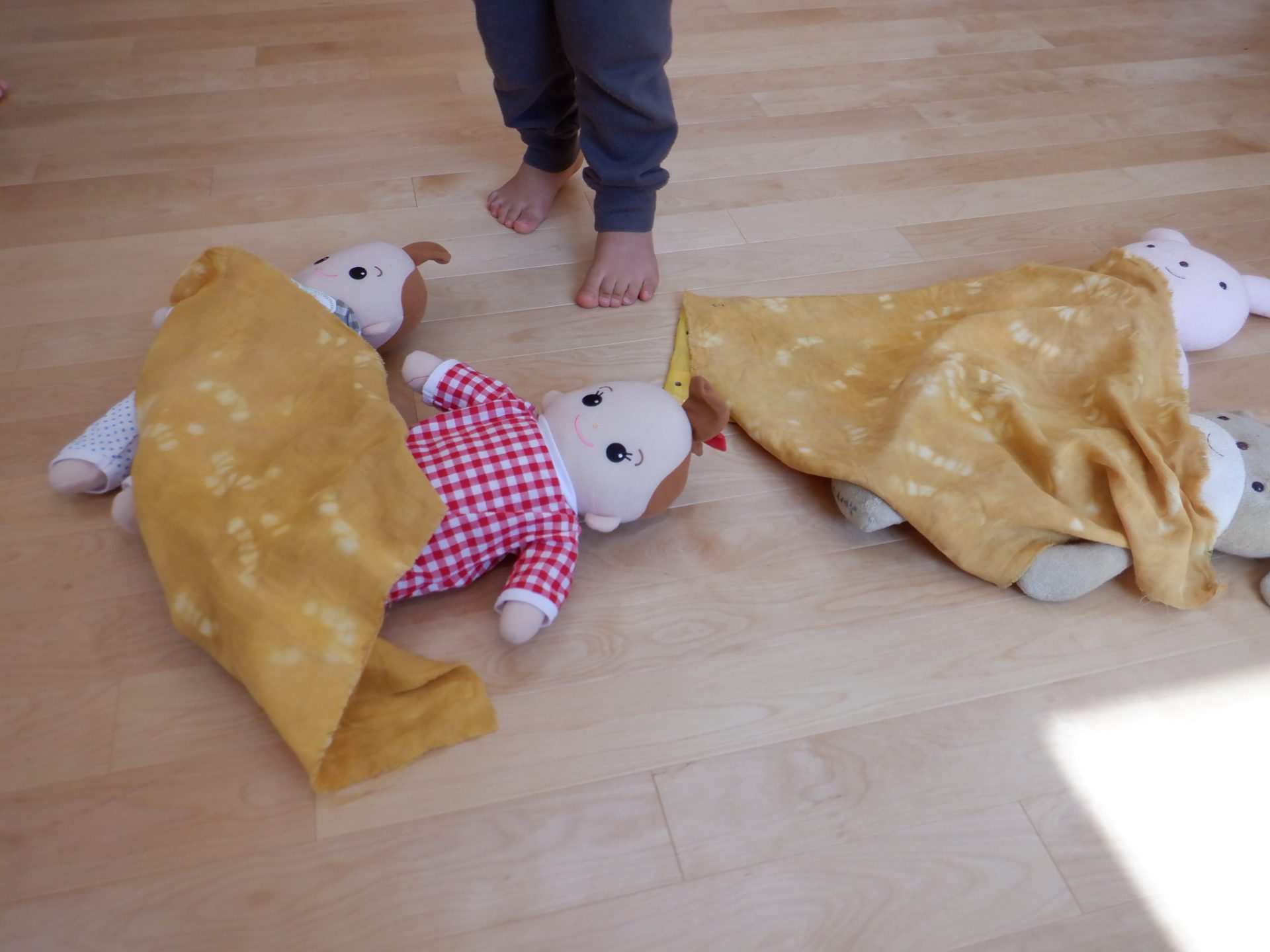 そこで、みんなで食べている玉ねぎで白いハンカチを変身させよう!と