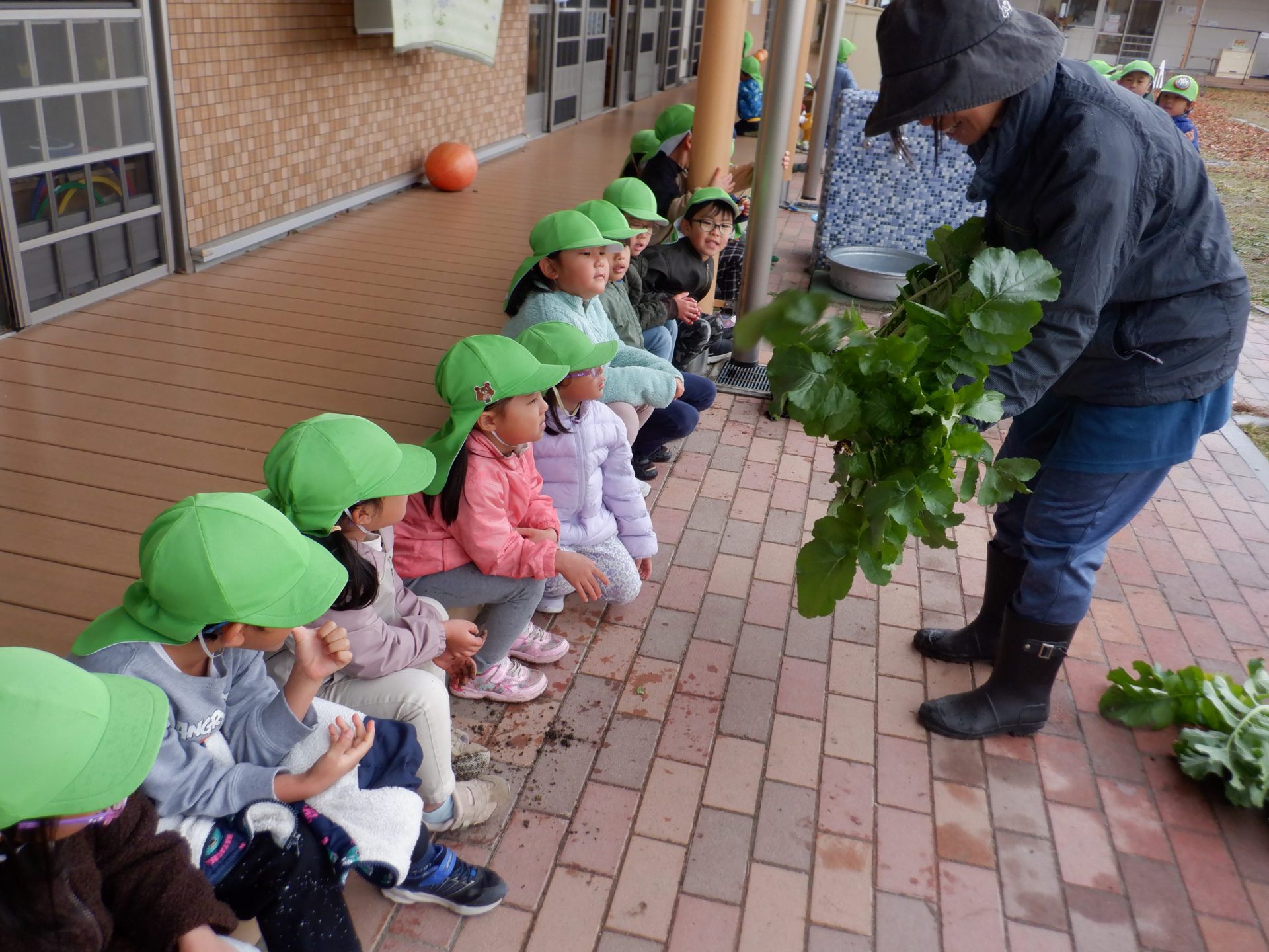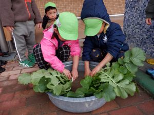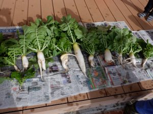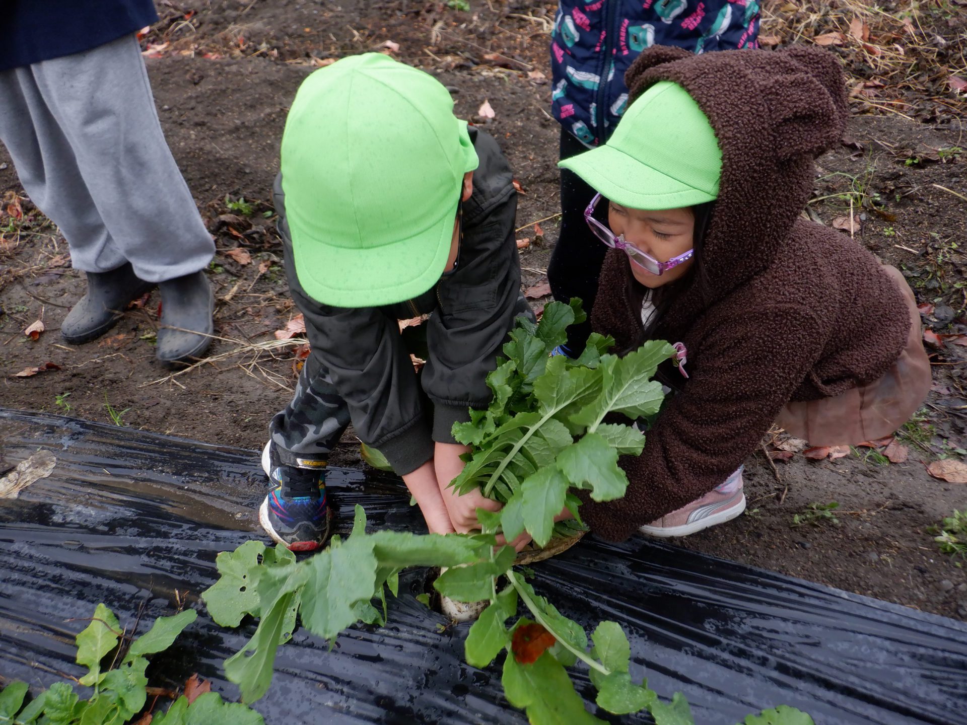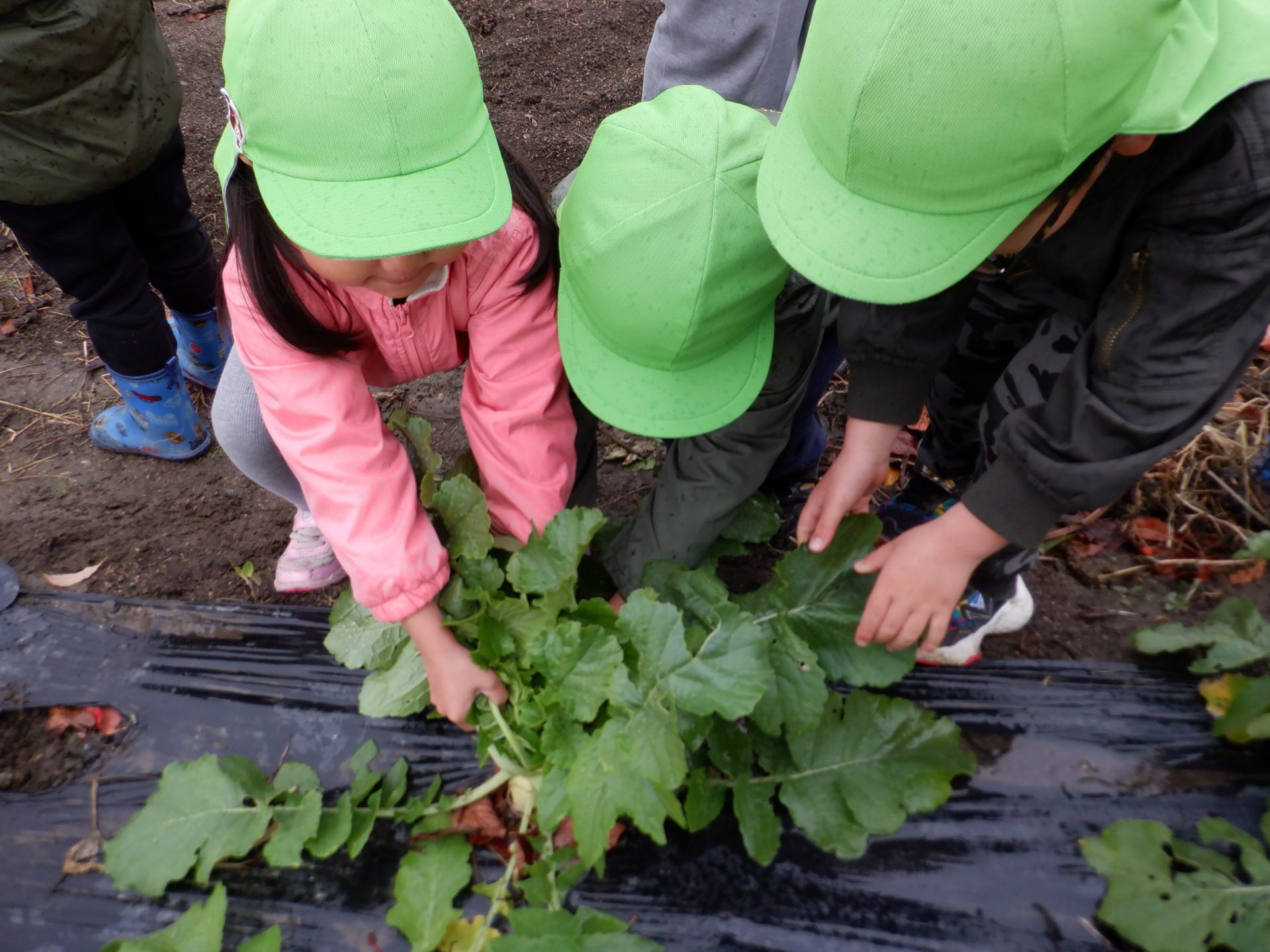 夏の終わりにみんなでまいた大根の種「大きくなりますように」とお願いしながら成長を見守ってきました。