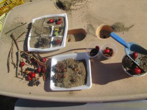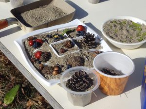 おままごとでは、松ぼっくりやどんぐりを使った、チャーハン・ケーキ・カレーなどすてきなごちそうが並びます!