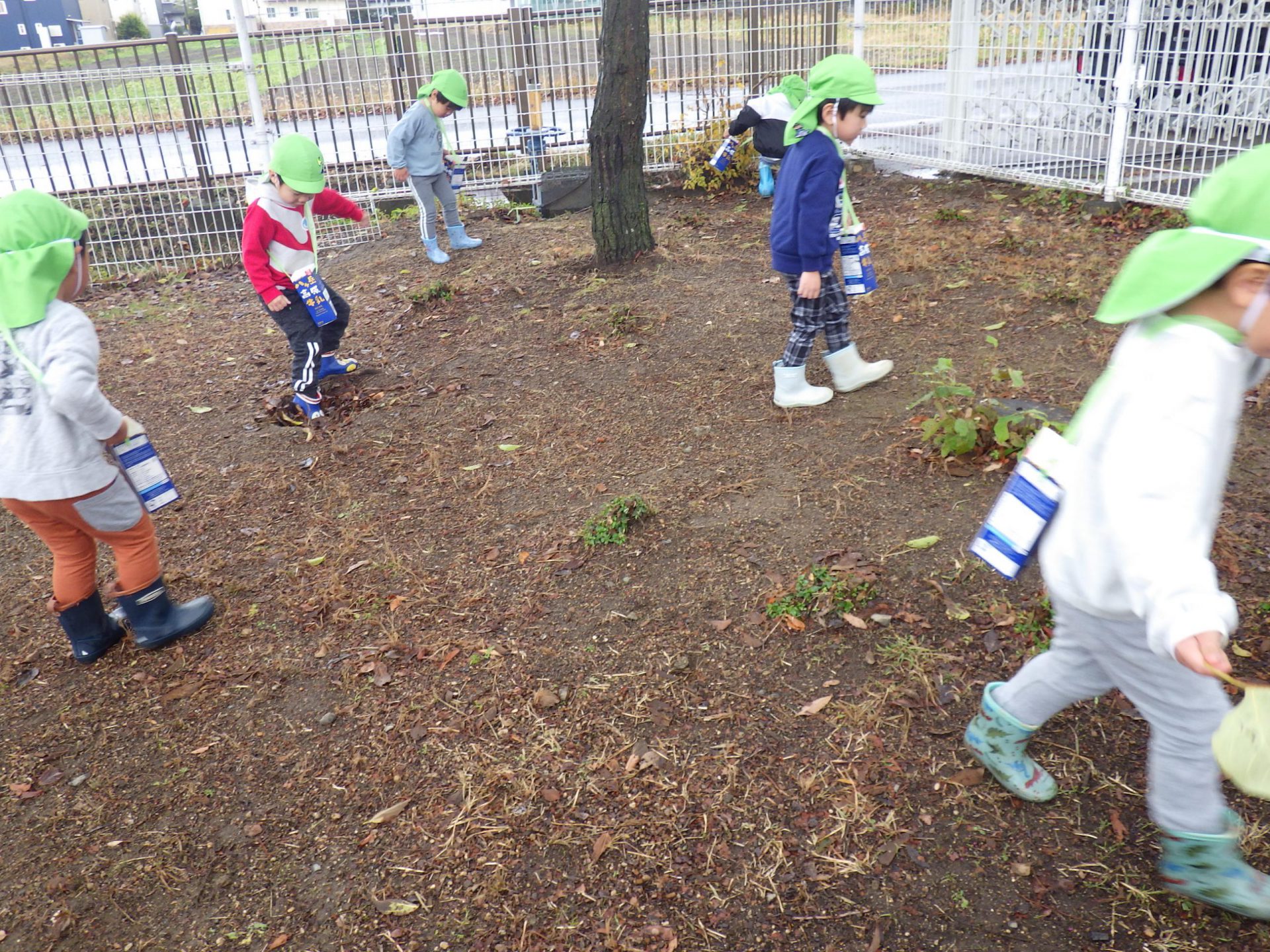 毎日、園庭や散歩で草花や木の実を見つけてお家へのお土産にしていた子ども達。
