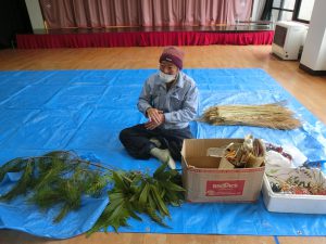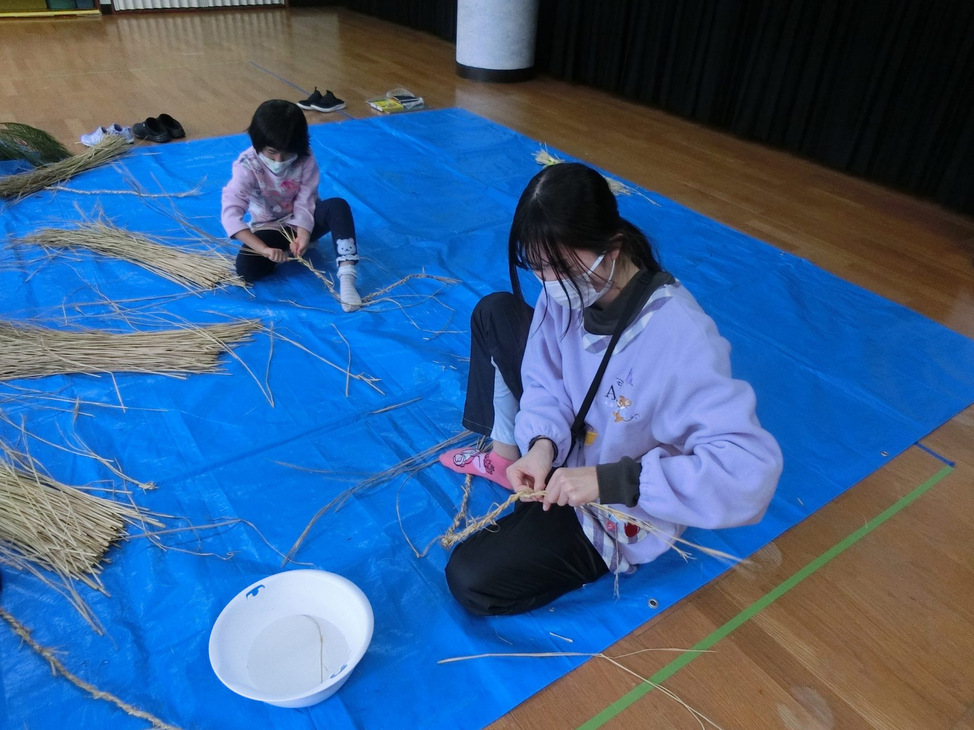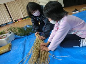 今日は地域の彫刻家、敬造さんにしめ縄の作り方を教えてもらいました。