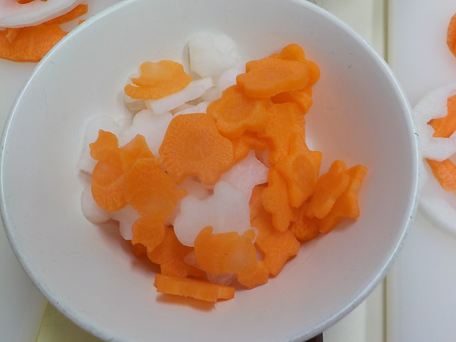 ・野菜の型抜き・人参かたいー手が痛くなっちゃった。