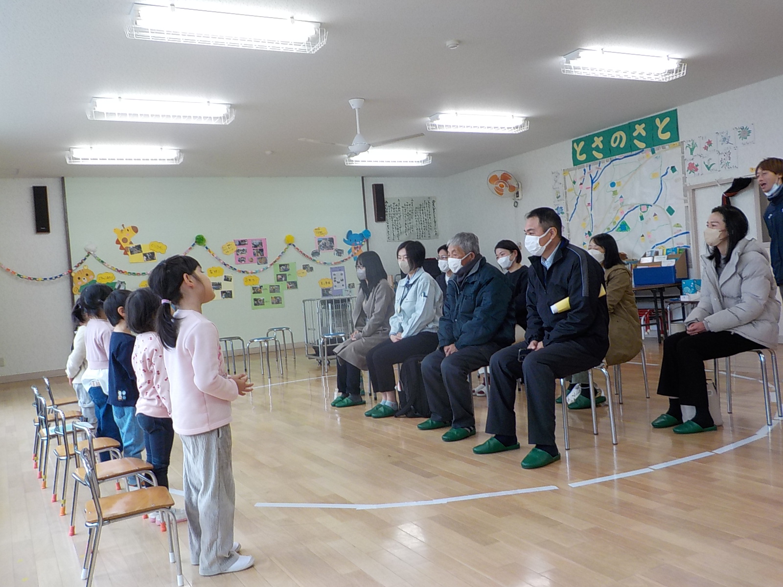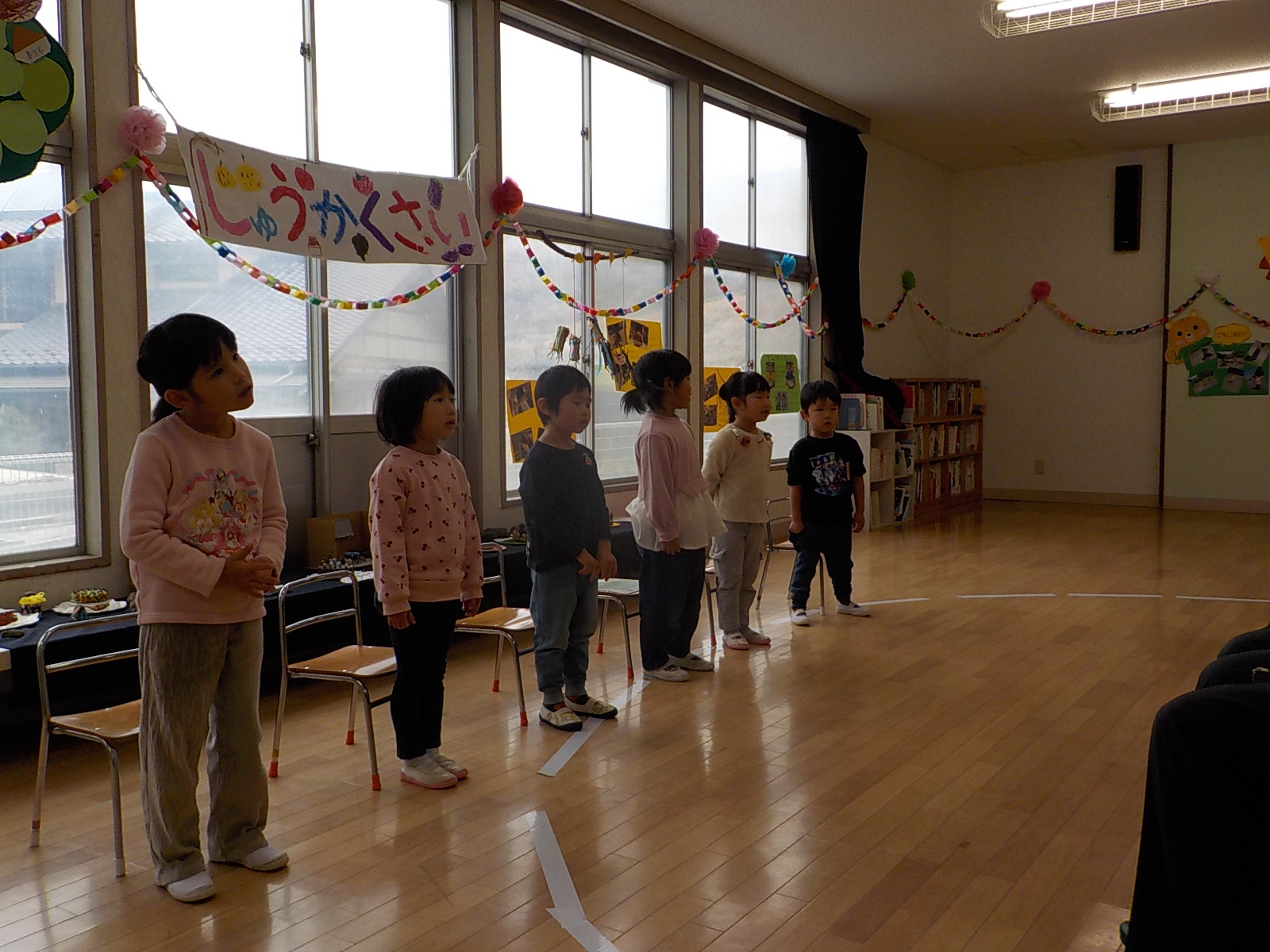 大きな声で自己紹介をしたり、歌をうたったりして、来てくださったお客様もいっぱい拍手をしてくれました。