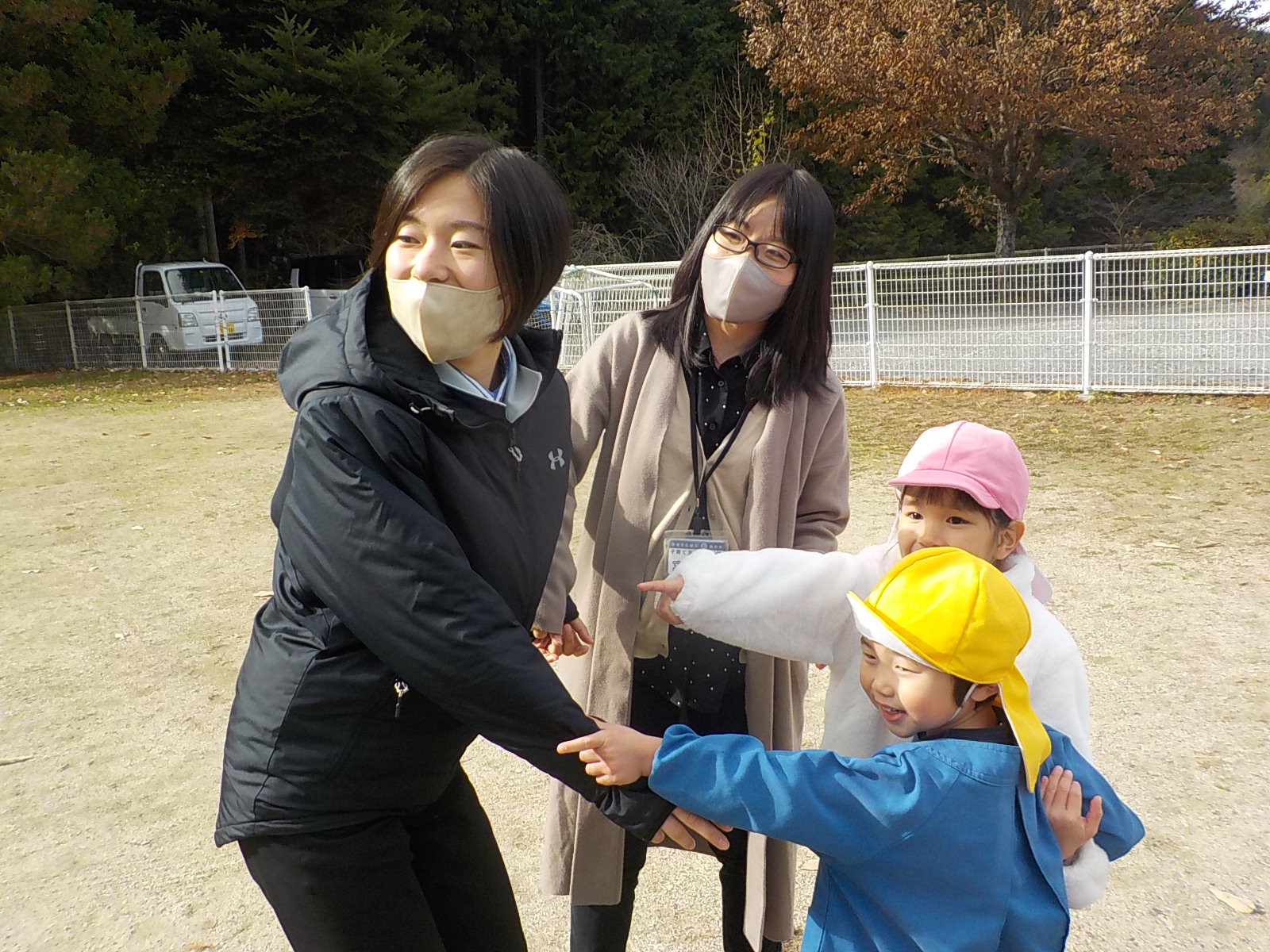 園庭に出て踊りを踊ったり、ゲームをしたりして遊んでもらいました。