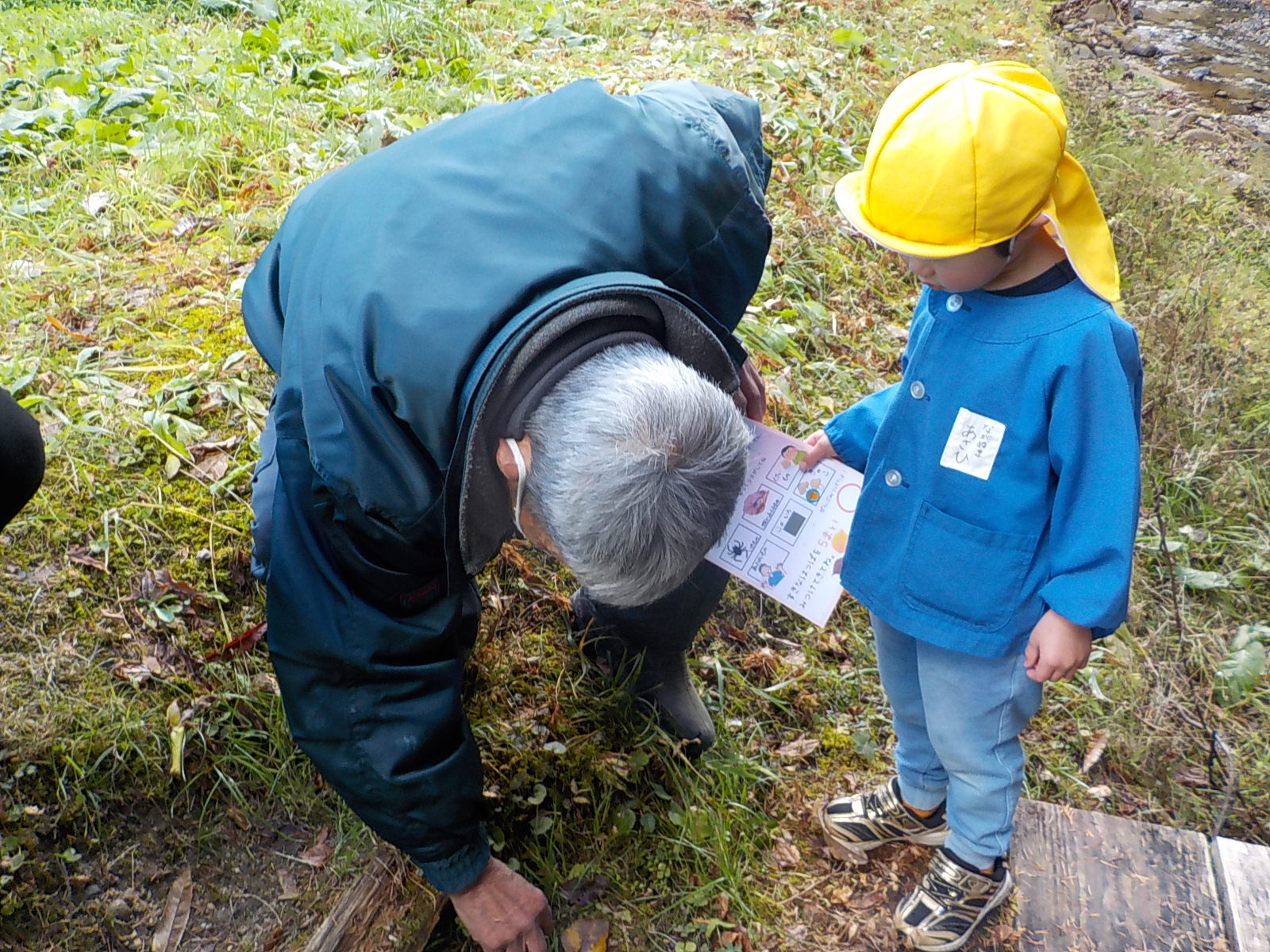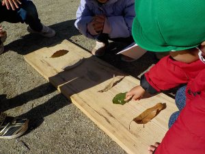 ネイチャーゲームの中では、顔を寄せて内緒話をしたり、課題の自然物を一緒に探したりほのぼのとしたふれあいが見られました。