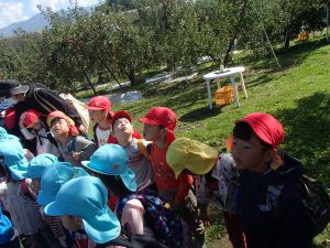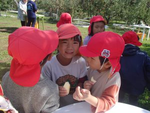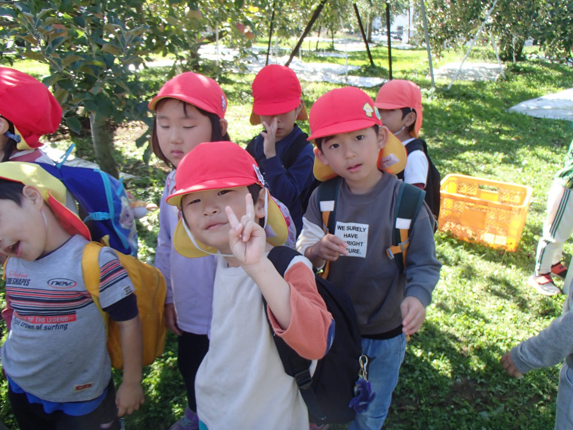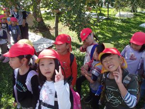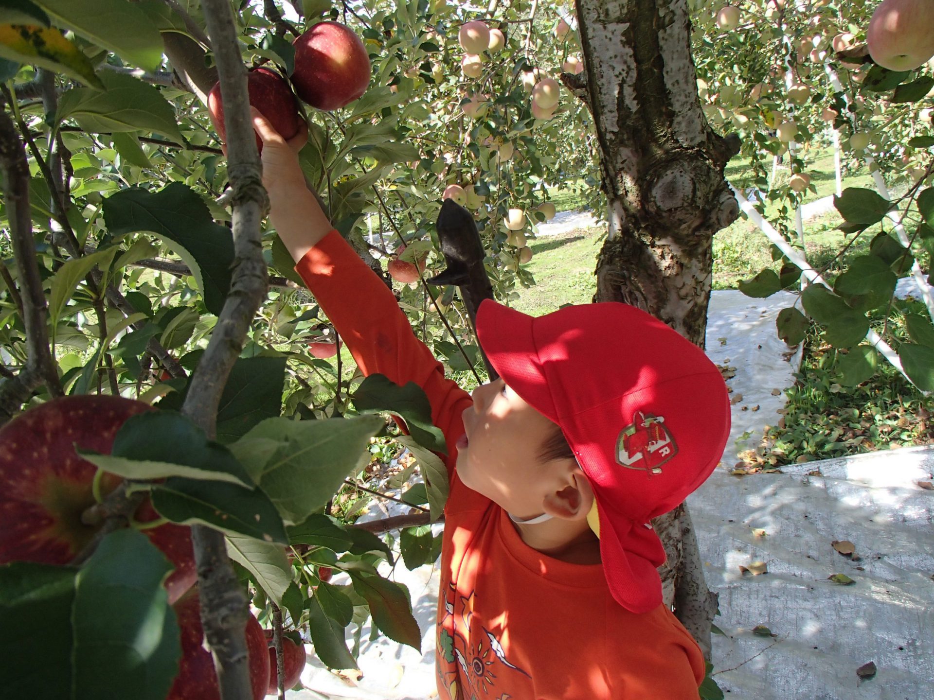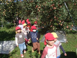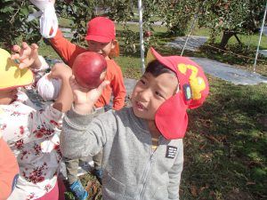 10月 ポカポカとした遠足日和のなか、子どもたちの楽しみにしていたりんご狩りへ行ってきました!
