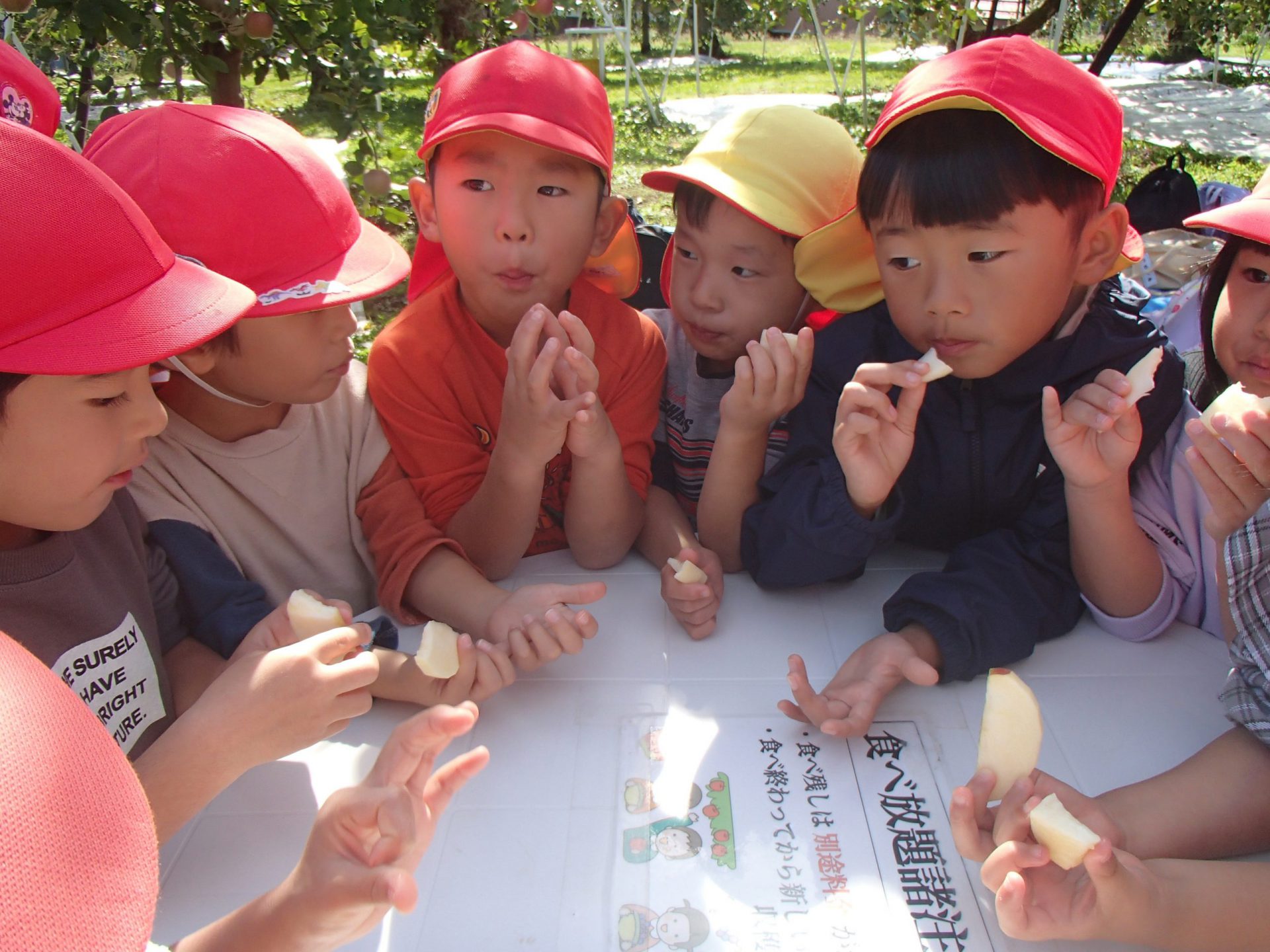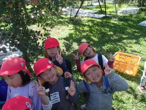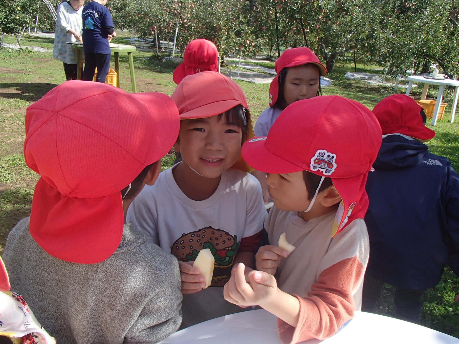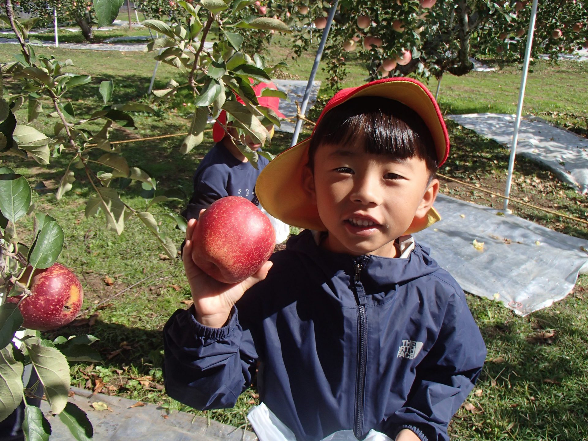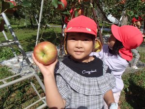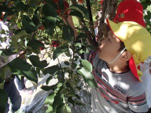 りんご狩りを通し、たくさん五感が刺激された子どもたちは、保育園に帰ってきてからも「りんごおいしかったね」「大きいりんごがとれてうれしかったね」と、お話が止まりませんでした。