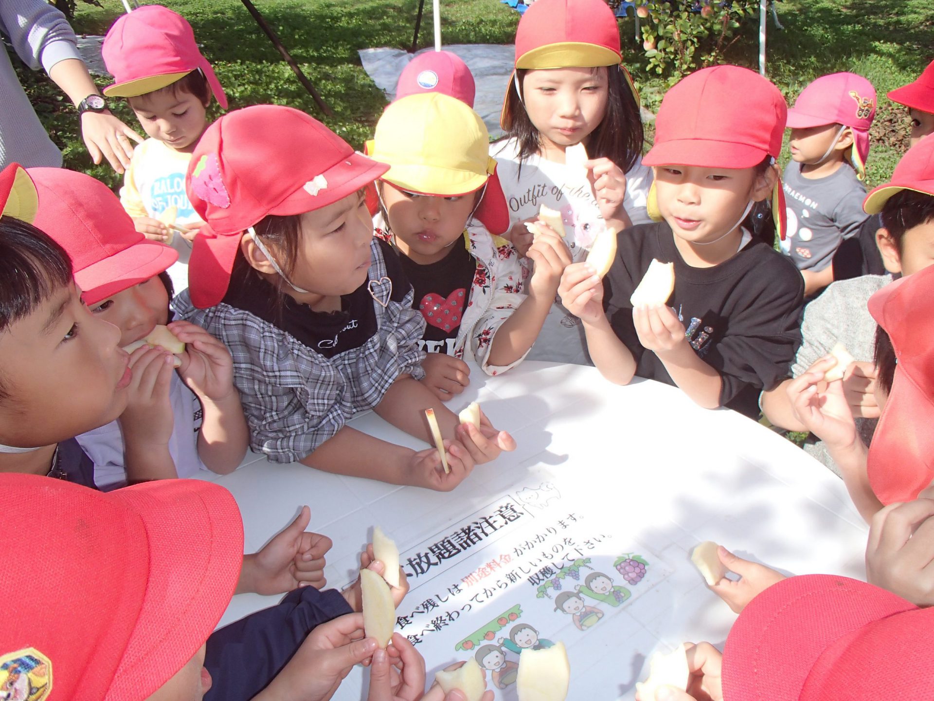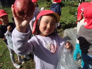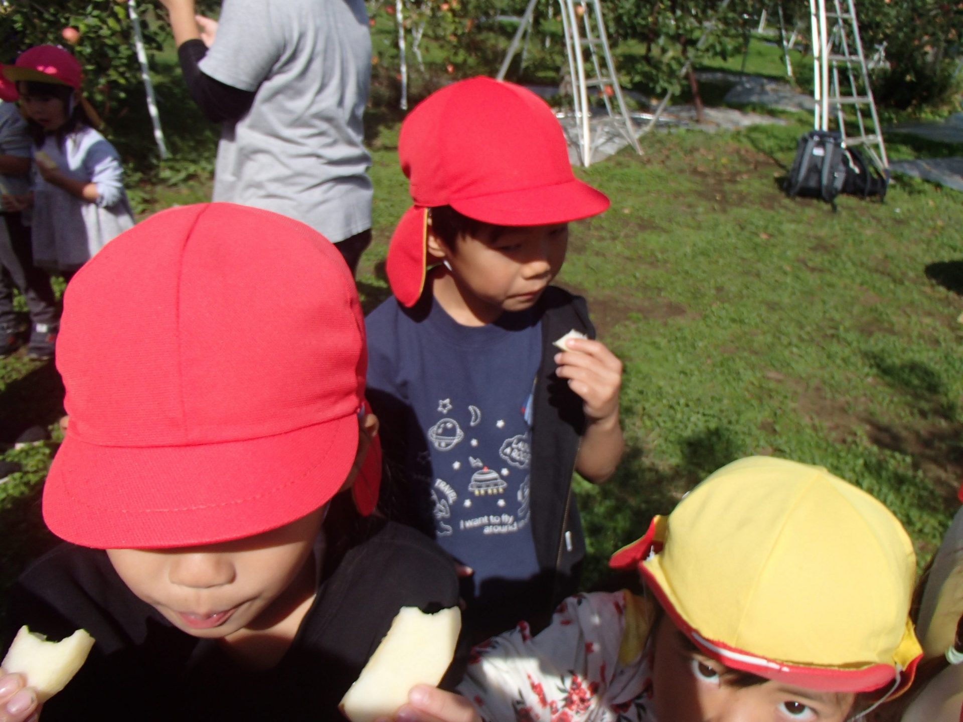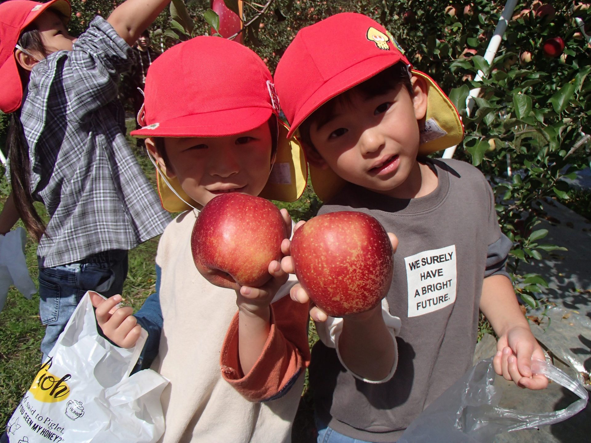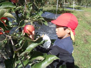 りんご狩りを通し、たくさん五感が刺激された子どもたちは、保育園に帰ってきてからも「りんごおいしかったね」「大きいりんごがとれてうれしかったね」と、お話が止まりませんでした。