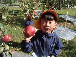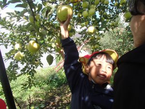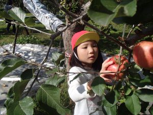 今年も飯山市にある塩崎農園さんで、りんご狩りの体験をさせていただきました。