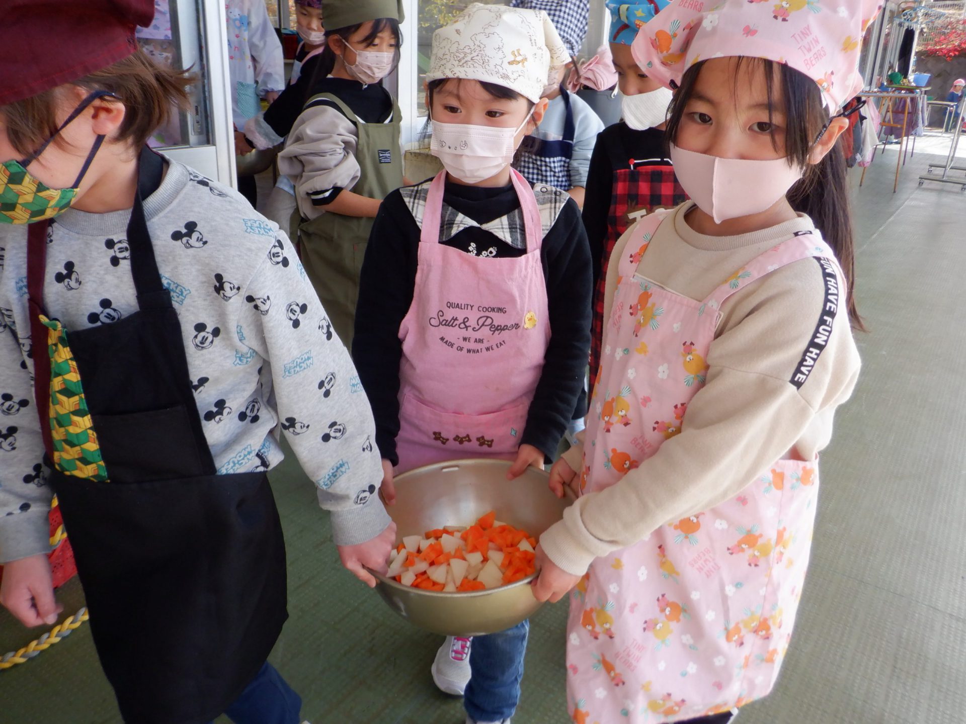 自分たちで作った野菜、自分たちで料理した汁はいつもとちがった味がしたと思います。このような経験を通して食べることへの関心や、食べられることへの感謝の気持ちにつながっていってほしいと思います。