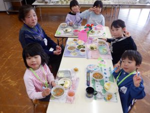 お世話になった皆さんをたくさんご招待していたのですが、お忙しかったり、体調を崩されたりで地域の方お二人と市役所の栄養士さんが参加してくださいました。