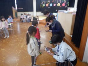 年長さん何してるのかな?と小さいお友だちも順番に見にきました。